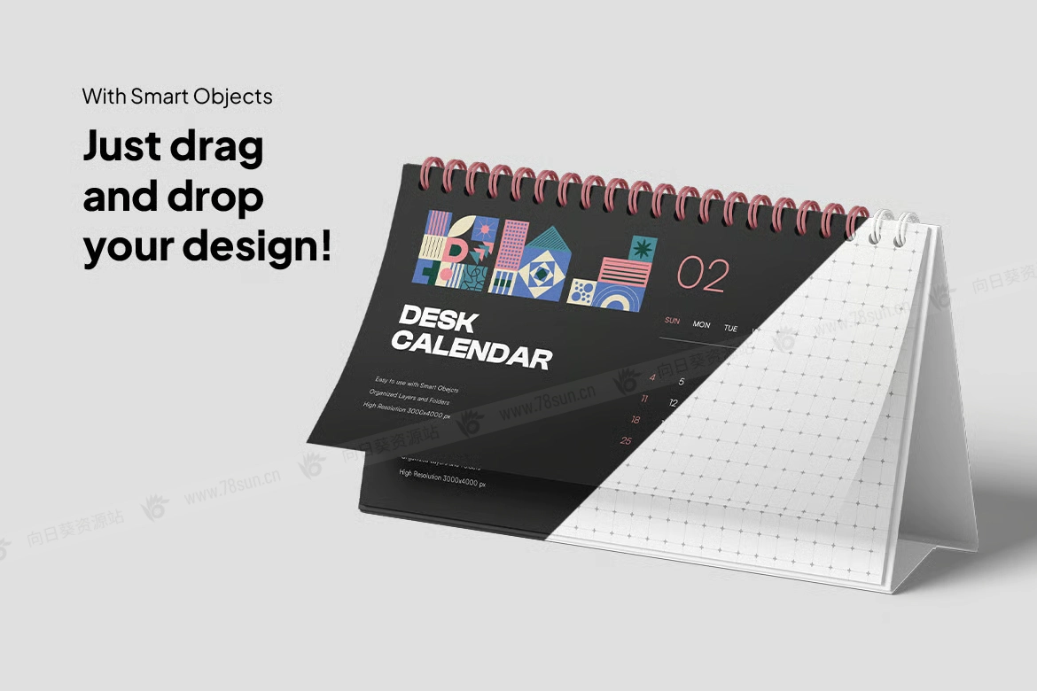 日历台历VI效果图展示智能贴图psd设计样机,智能对象层,您可以毫不费力地调整颜色、字体和图像,以创建 100% 属于“您的”日历。