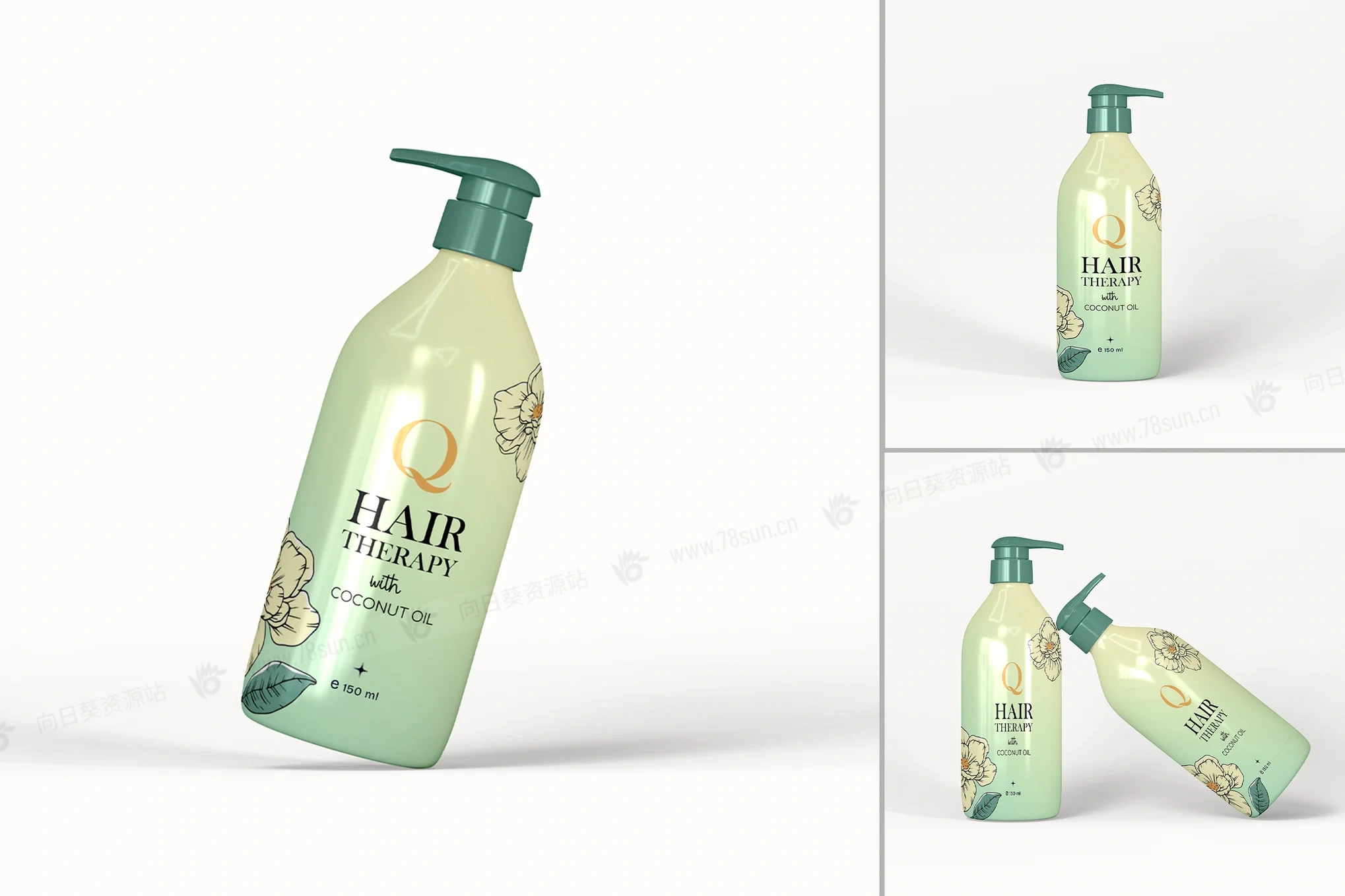 洗发水化妆水泵瓶品牌VI效果图展示智能贴图PSD设计样机展示您的化妆品泵瓶、化妆水分配器和护肤品的包装概念。使用 Photoshop 智能对象功能使这些 Mockup 文件易于编辑,您可以在几秒钟内轻松替换您的设计和背景颜色以创建您喜欢的外观。这些文件是高度可定制的,因此您可以创建您选择的不同外观。只需按照用户指南 (PDF) 操作即可