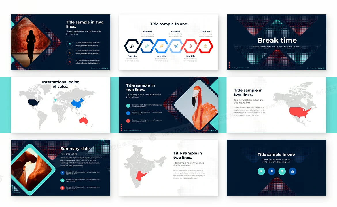 强色彩创意几何图形商务演示PowerPoint幻灯片模板,这个设计突出了内容和图像,你只需要替换你自己的文本添加你的图片,可用版本 Powerpoint 和 Google 幻灯片,