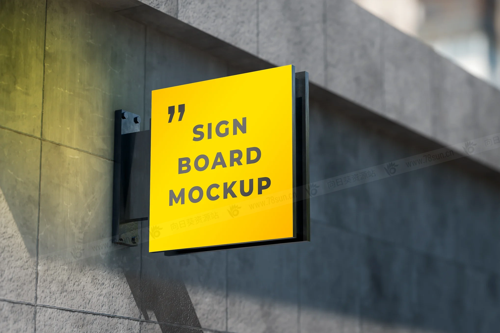 方形外部建筑灯箱标志箱VI效果图展示智能贴图psd设计样机