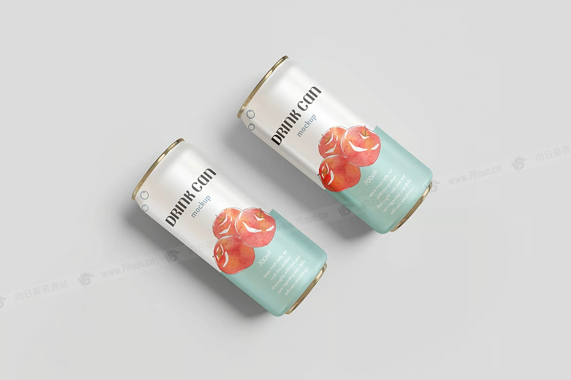 金属饮料罐易拉罐品牌VI效果图展示智能贴图psd设计样机,使用智能对象轻松替换您的设计,双击智能图层,复制并粘贴您的作品,保存,