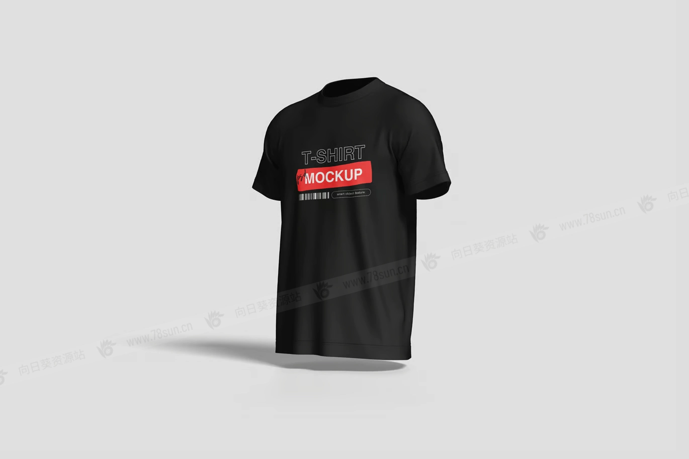 常规圆领T恤服装品牌VI效果图展示智能贴图psd设计样机, Photoshop 文件、分层和智能对象功能,可帮助您更改设计中的示例图像。