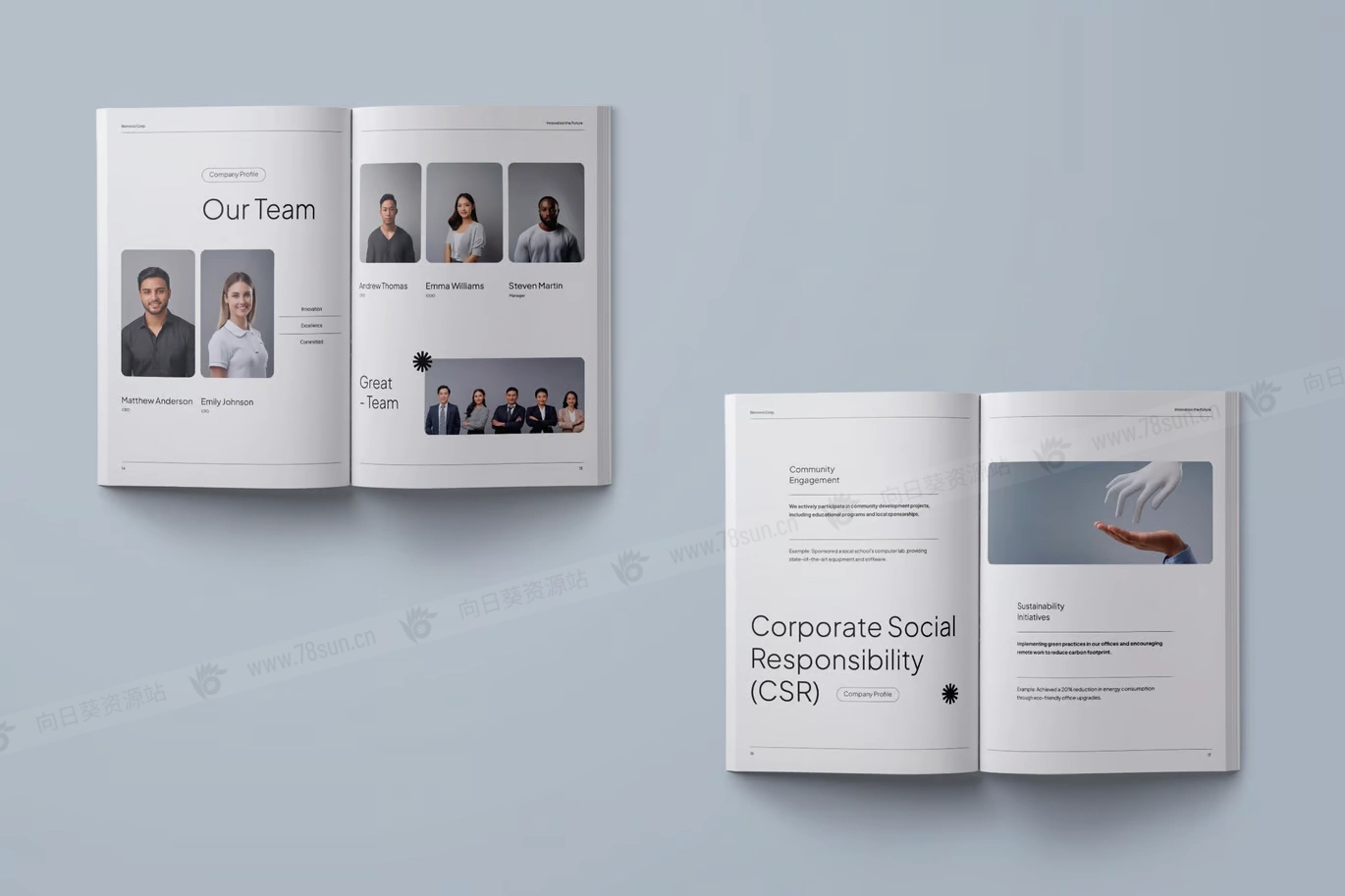 极简主义公司简介小册子杂志宣传册画册indd docx设计模板。此模板非常易于使用且灵活。所有模板都易于定制,文件组织整齐,因此您可以表达您的创造力并节省大量时间,并且还兼容Office Word和Canva应用程序,因此您会发现它更易于使用。