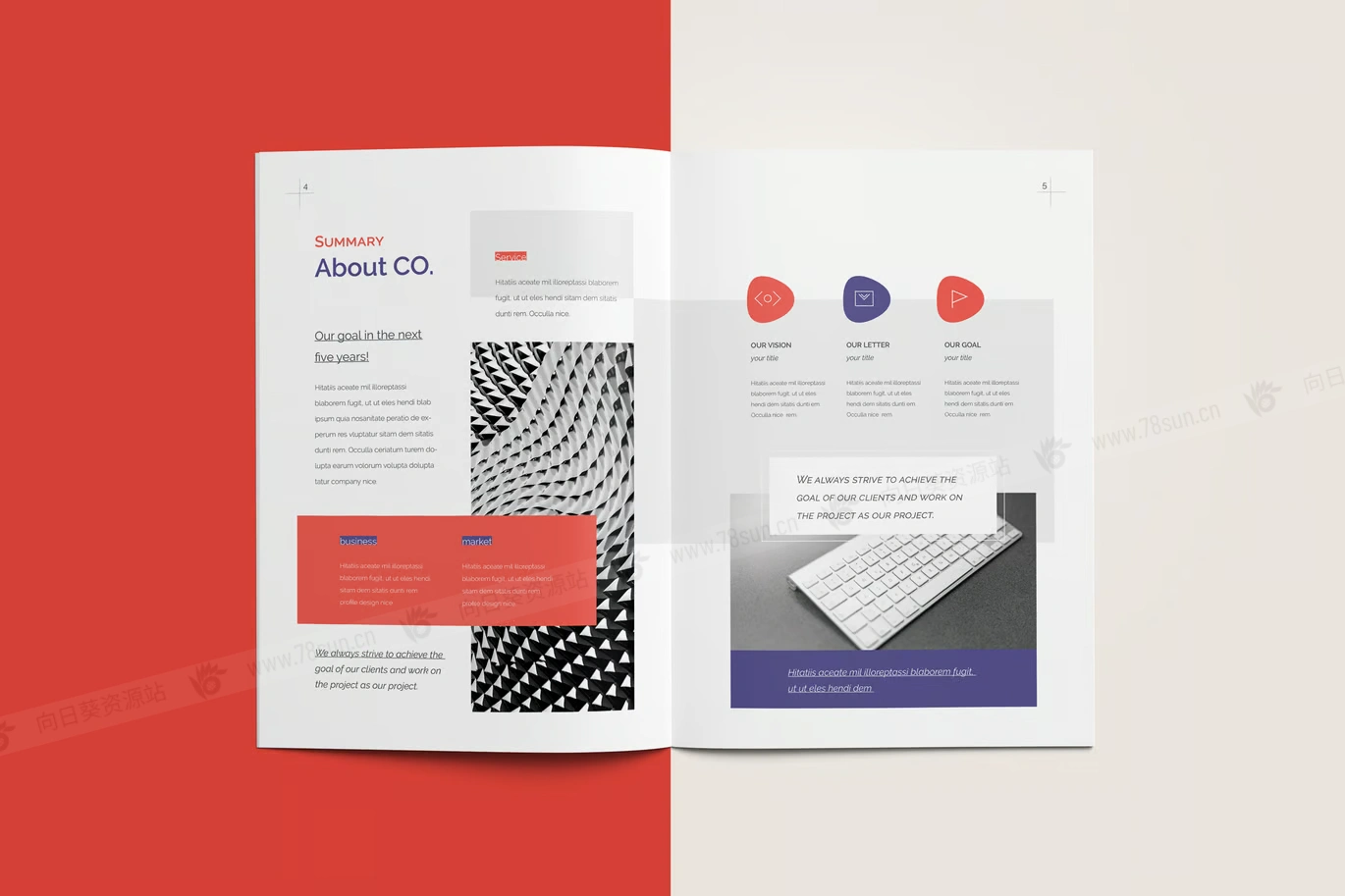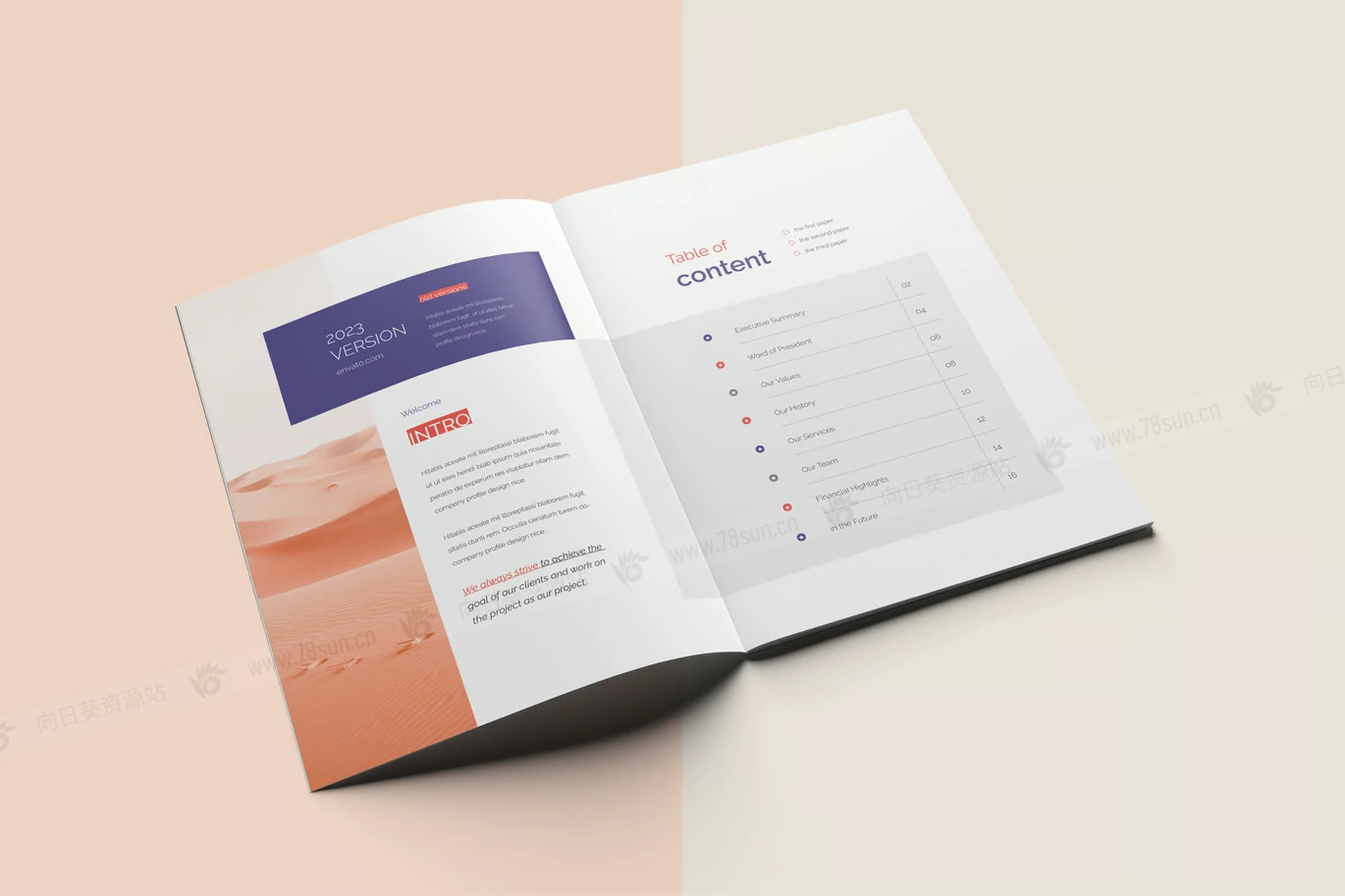 A4公司简介年度报告宣传手册杂志画册indd设计模板。在 Adobe InDesign 中创建。易于编辑、使用和自定义。 它是完全可编辑的,您可以轻松替换自己的图像、字体和更改页面,而不会损失质量或布局 包括免费字体和图标链接。