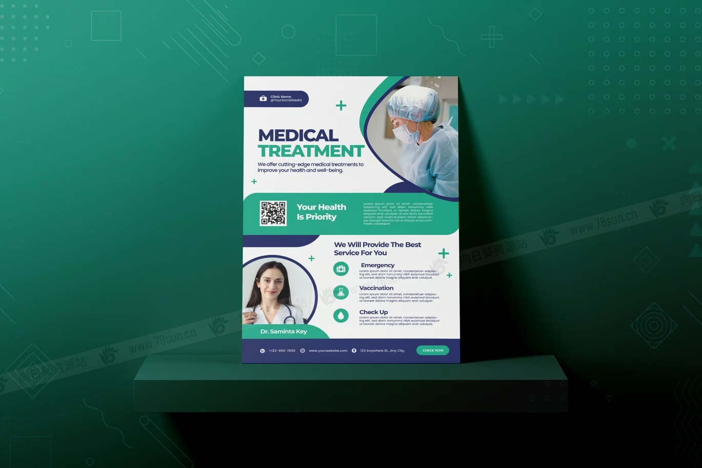 医院医疗保健服务宣传单海报psd ai设计模板,