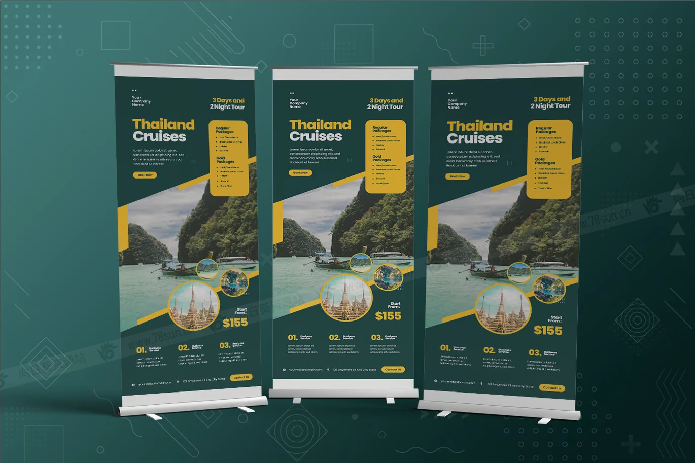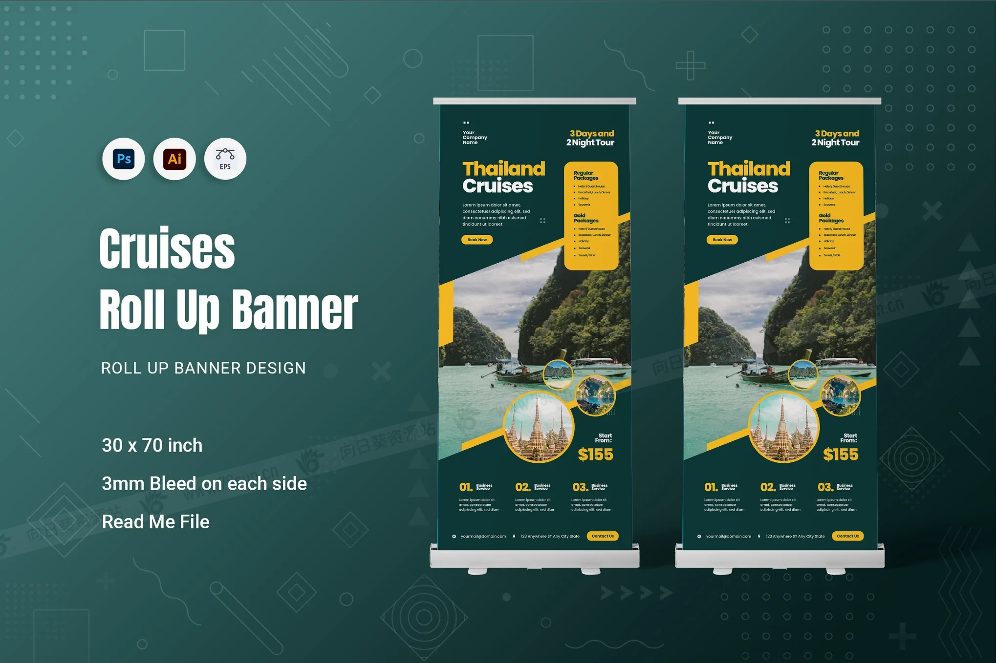 邮轮旅行旅游度假宣传展架易拉宝psd ai设计模板。它非常适合活动和展览,展示您的品牌或促销活动。使用您自己的文本和图像进行自定义,以获得个性化风格。