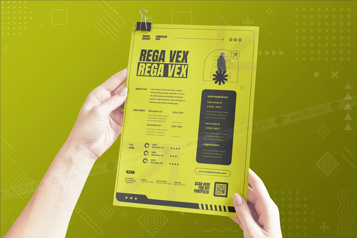 用我们时尚的平面设计简历模板发表声明。它干净、现代且易于定制。以专业而引人注目的布局展示您的技能、经验和作品集。非常适合平面设计领域的任何人,从初学者到经验丰富的专业人士。立即下载,让您的简历脱颖而出!