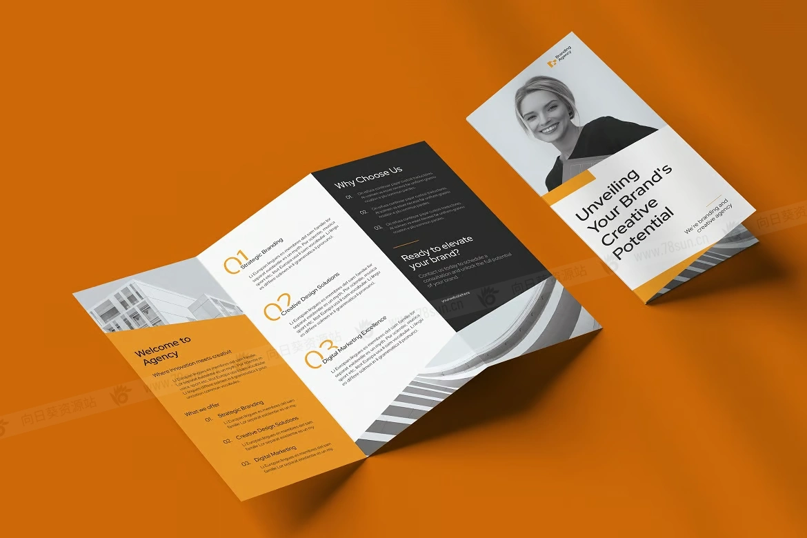 - A4 尺寸 8.27×11.69 英寸 + 出血 – CMYK 颜色的宣传册设计