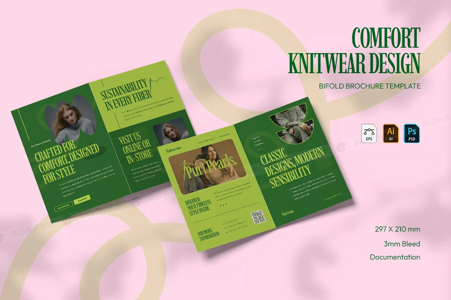 针织品服装店折页宣传单小册子psd ai设计模板,它时尚、精致且专业。本手册适用于任何商业或公司出版物,易于编辑,便于理解。只需放入您自己的图像和文本,