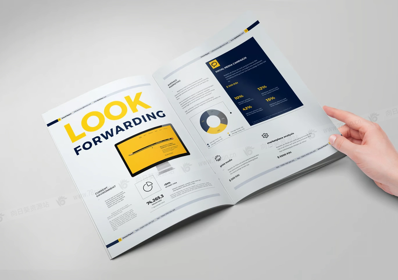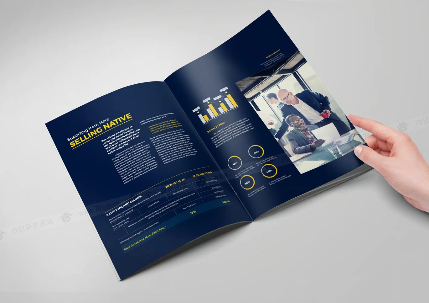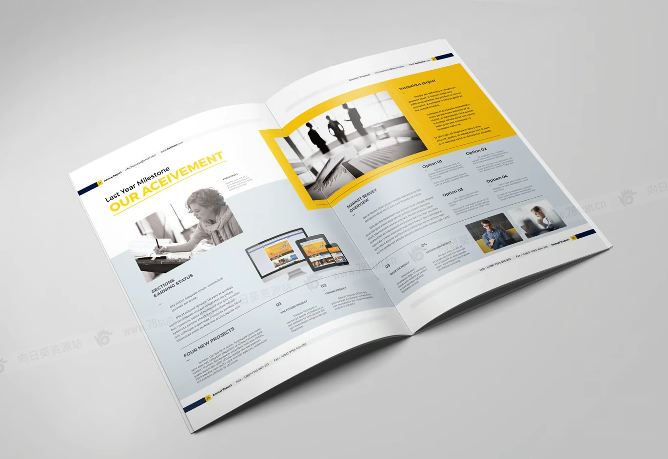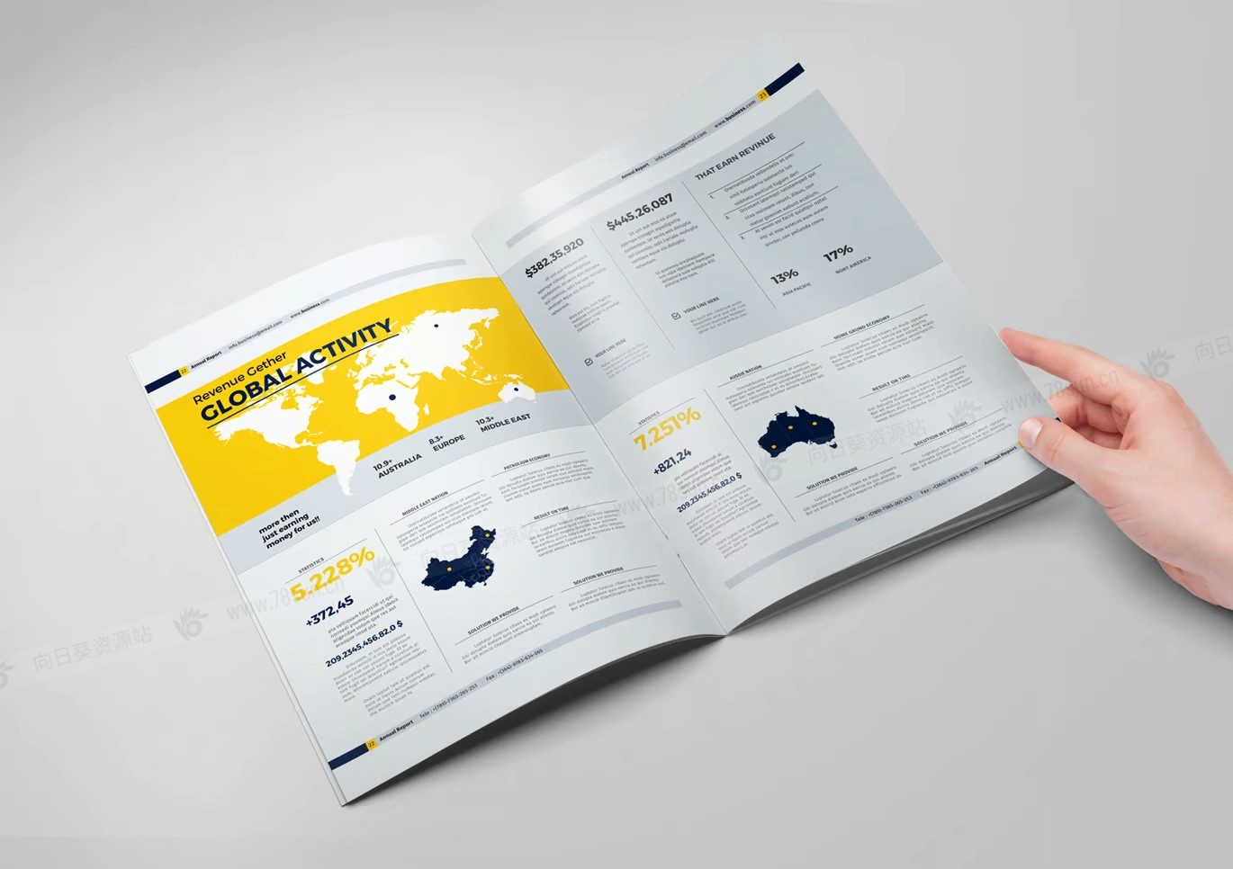 公司简介年度报告宣传杂志画册indd设计模板,两种不同尺寸:A4 和 US Letter。所有单位和文本都经过分层处理,以便轻松自定义。您可以简单地添加色板来应用整个文档,