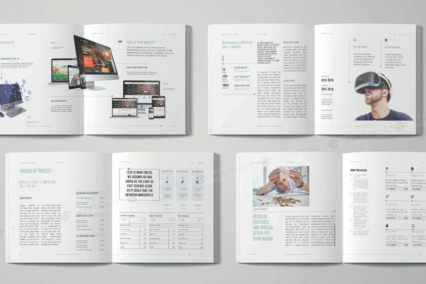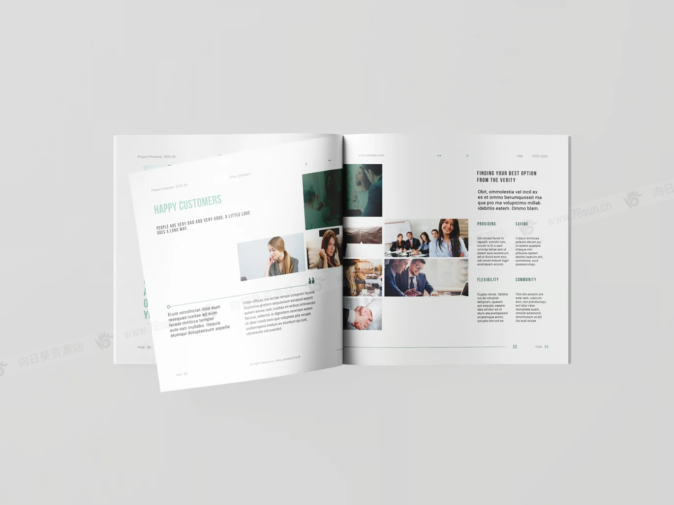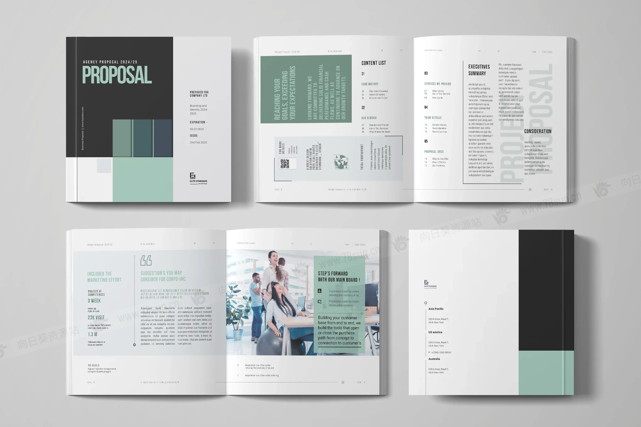 方形公司简介项目提案宣传杂志画册indd设计模板。具有已识别形状的可见色板,以及照片的裁剪占位符。它具有您期望在专业宣传册模板中获得的所有功能,从占位符到文本样式、可自定义的信息图表和易于编辑的母版页面。 添加了帮助 PDF 指南以更改颜色、文本和图像。