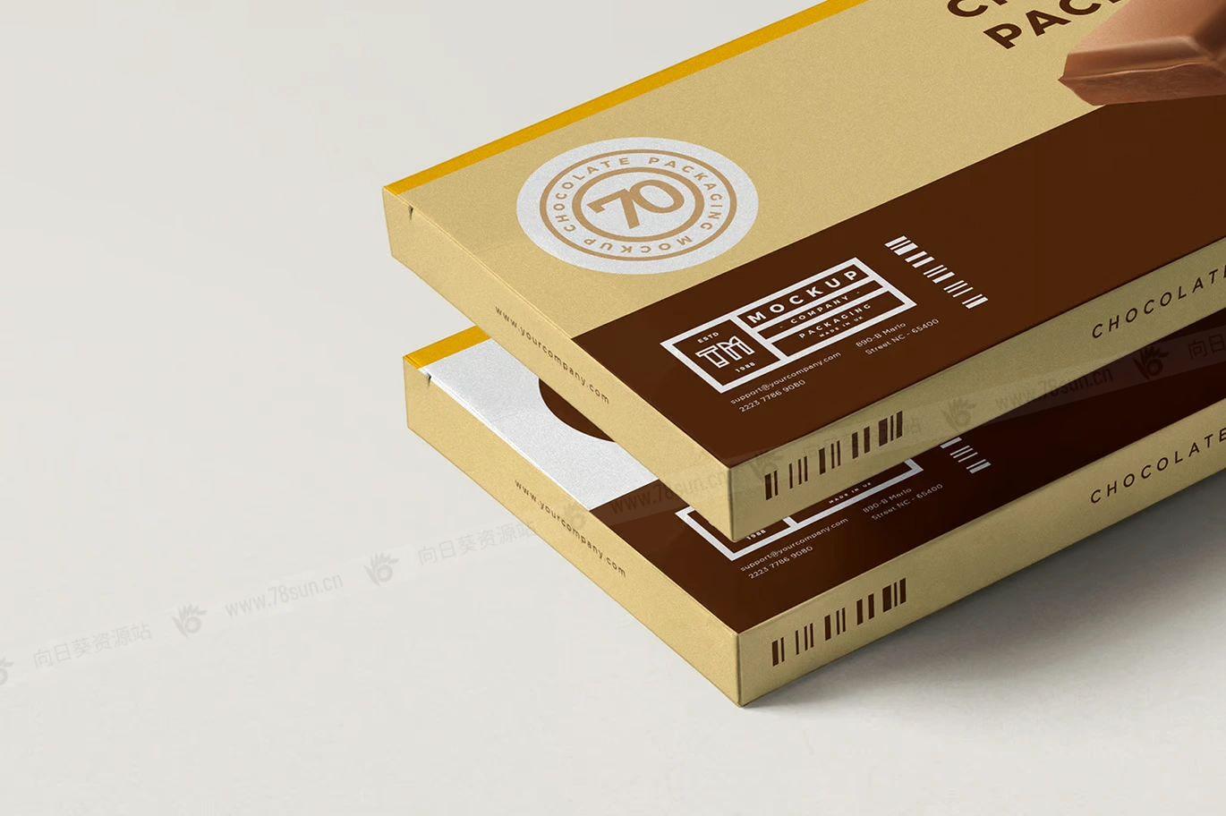 巧克力包装纸盒品牌VI效果图展示智能贴图psd设计样机,非常适合以高度的细节和真实感展示您的巧克力包装设计。这款巧克力包装模型提供了专业而时尚的演示,非常适合平面设计师向客户展示他们的作品。