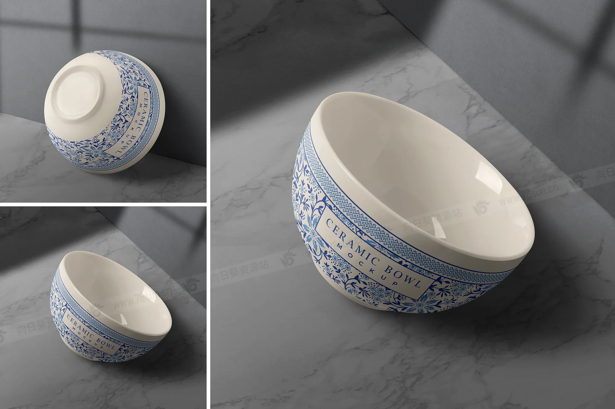 圆形陶瓷碗品牌VI效果图展示智能贴图psd设计样机,具有详细而逼真的设计,非常适合展示品牌和企业形象项目。