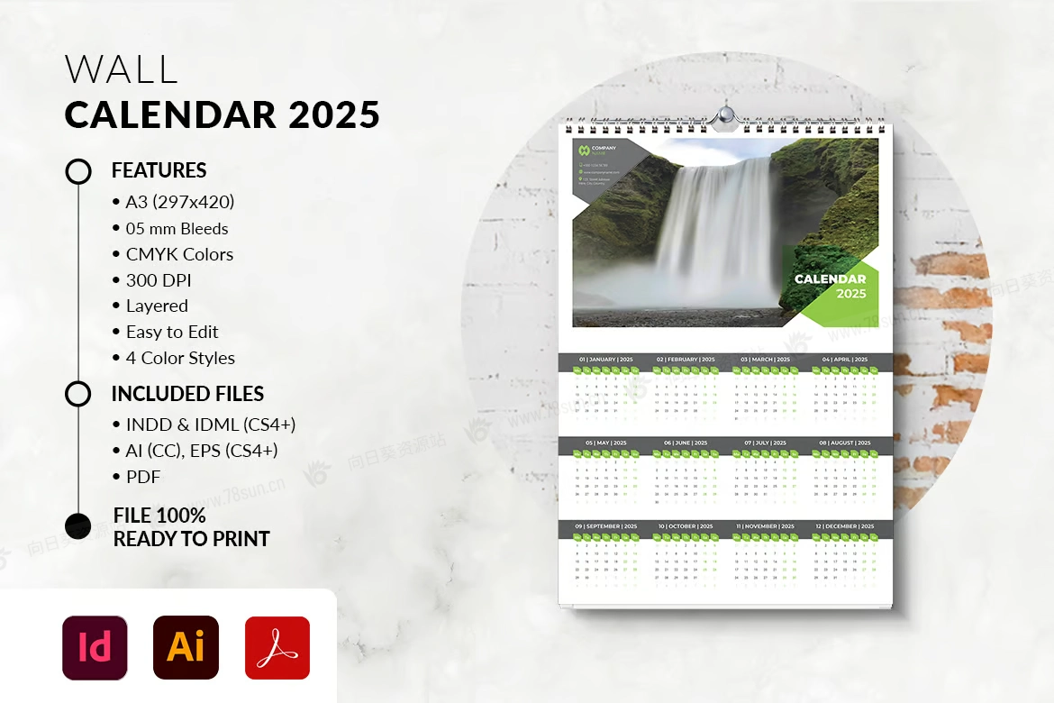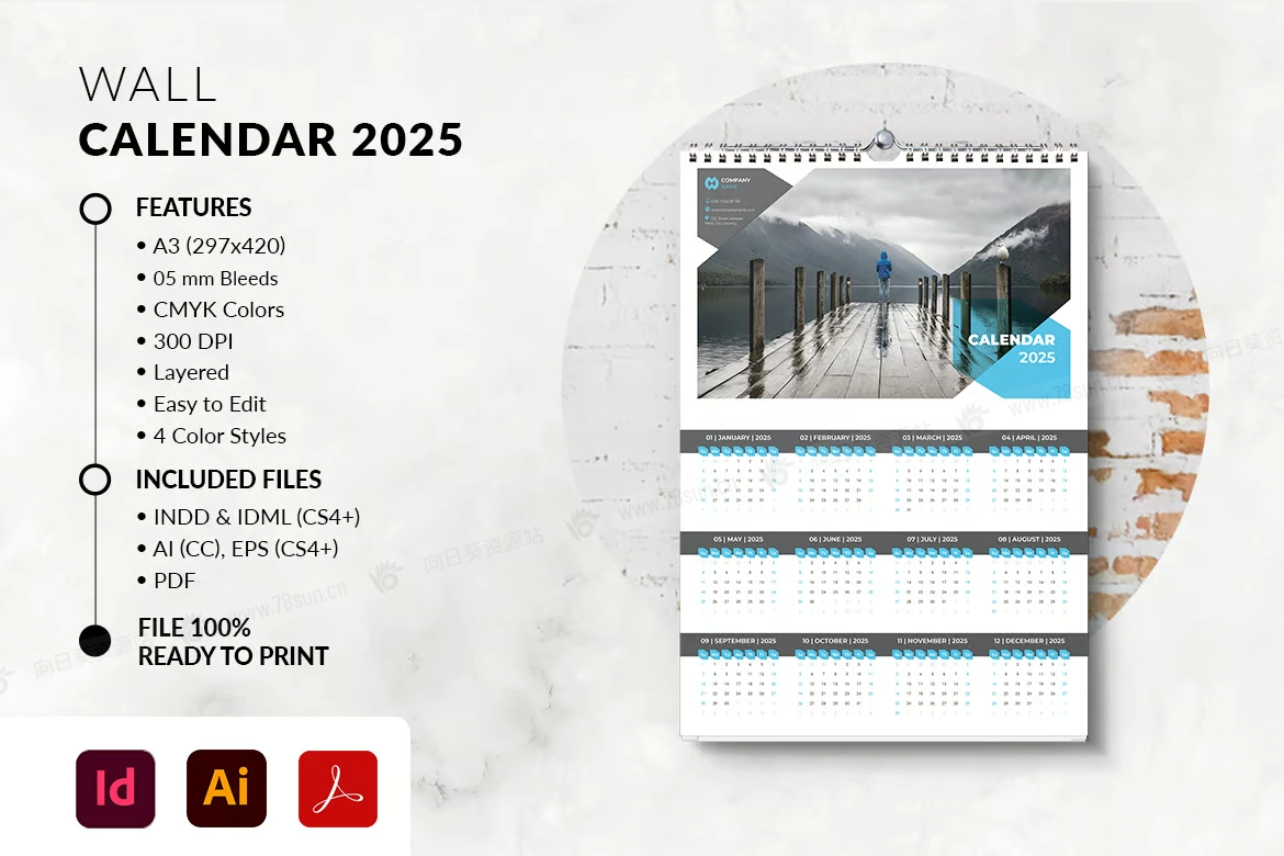 A5 2025年几何图形日历挂历ai indd设计模板,可用于制作公司公司的挂历以及其他目的。