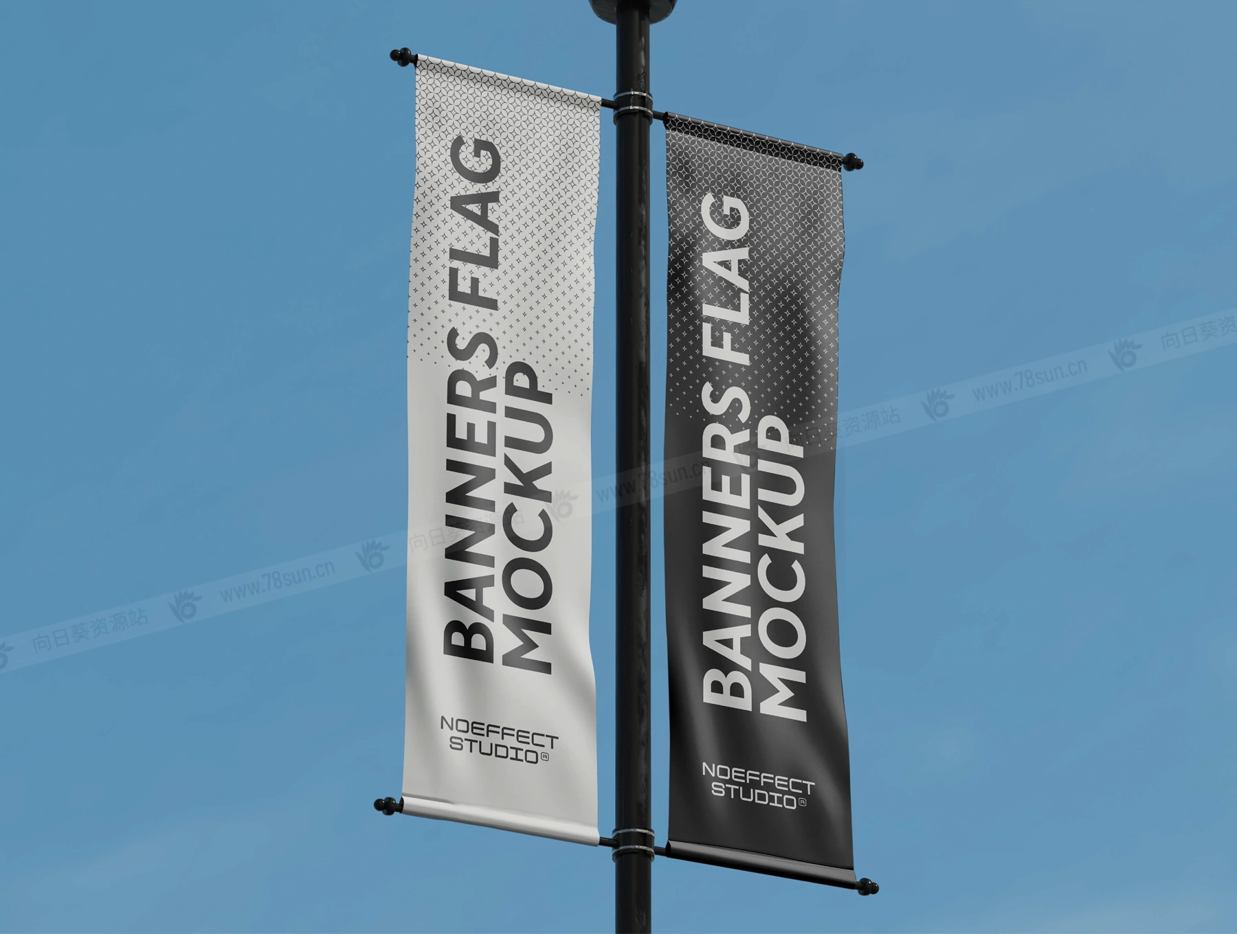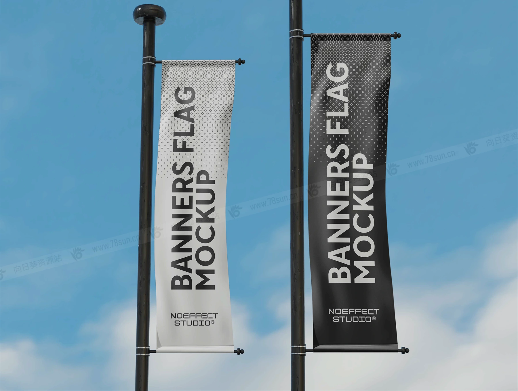 街杆灯柱道旗banner横幅广告VI效果图展示智能贴图psd设计样机,有 5 个场景和现代设计。它非常适合广告、促销、节日、活动、音乐会等。可以通过使用 PSD 文档中的智能对象将元素替换为您的设计,轻松创建专业的广告展示。
