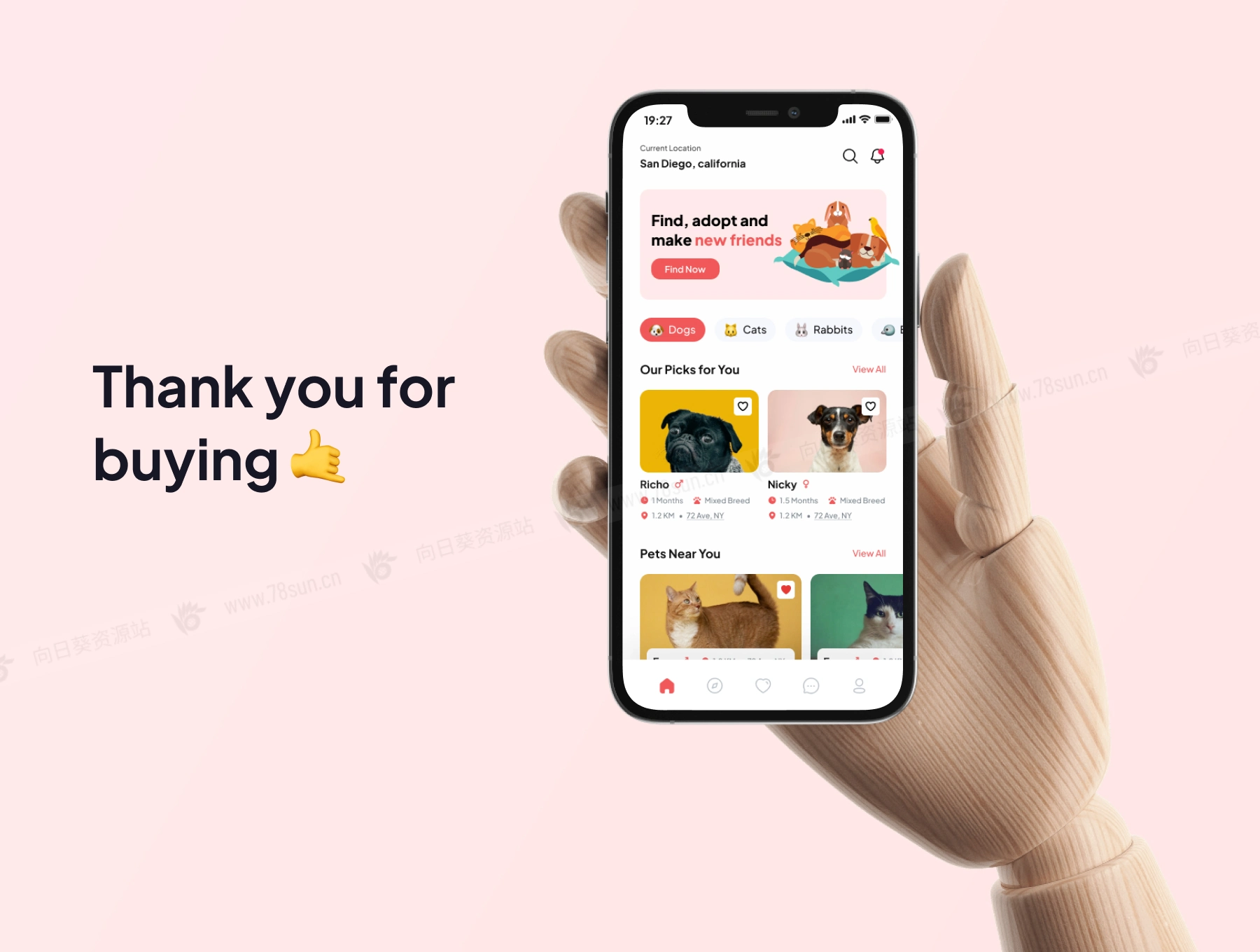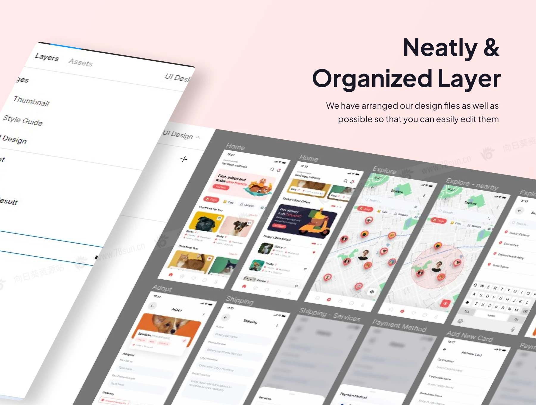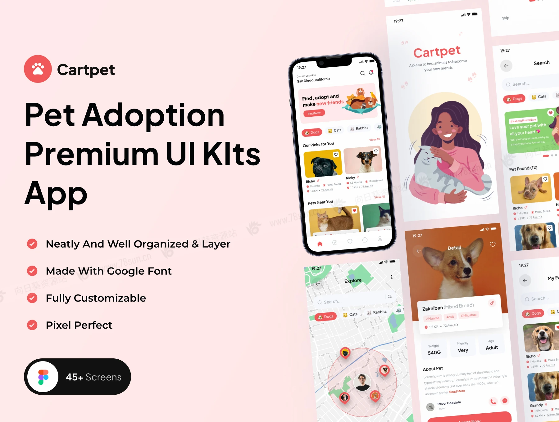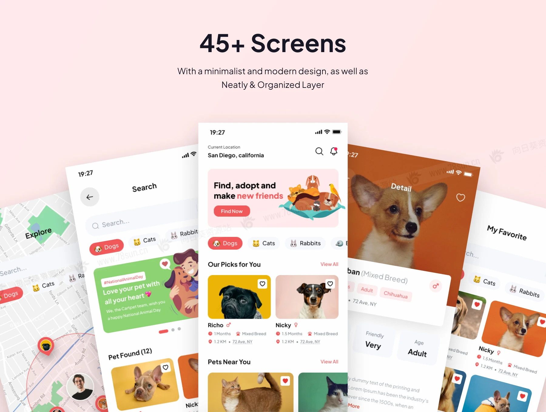宠物收养寄养分类列表app ui界面设计fig源文件模板,