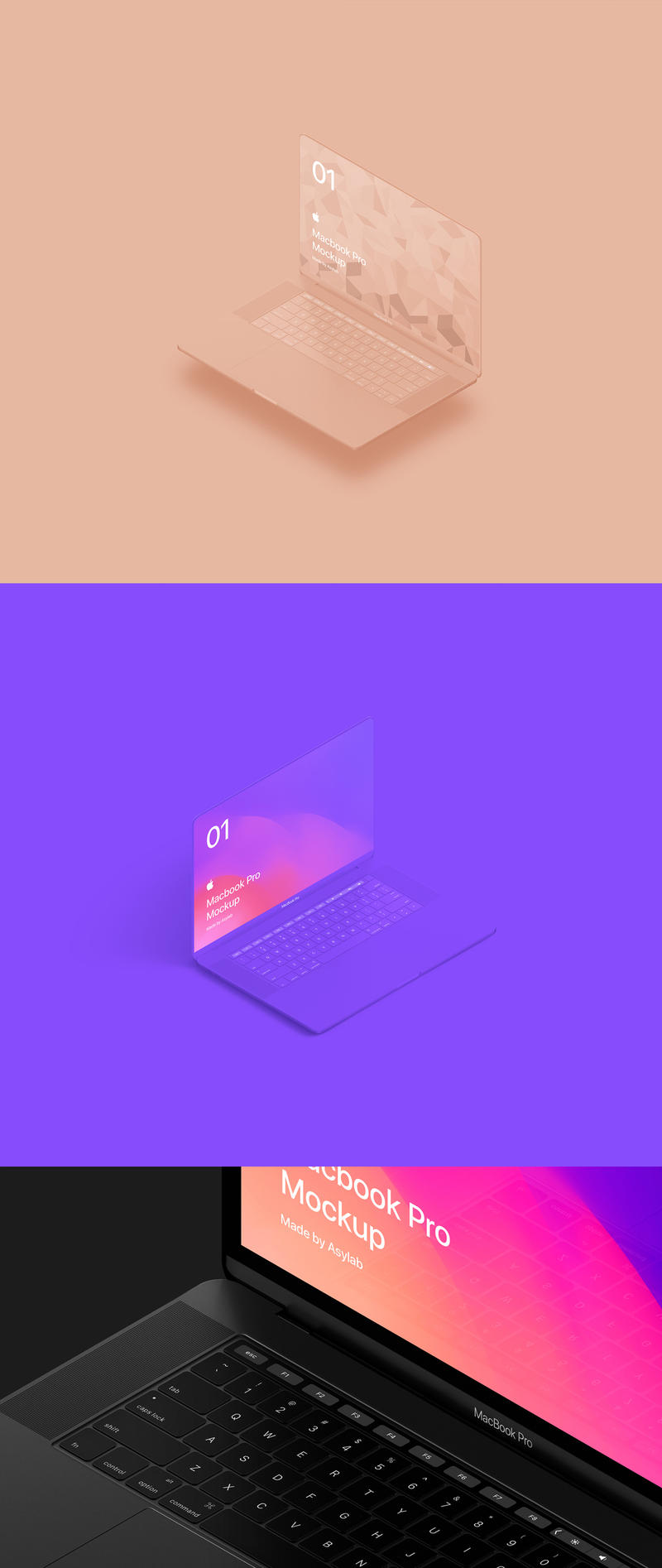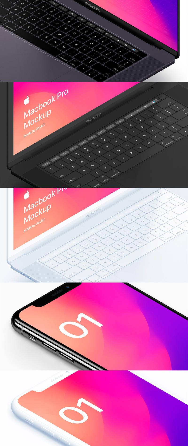 多色等距笔记本Macbook Pro+iPhone XS作品展示类psd样机模型