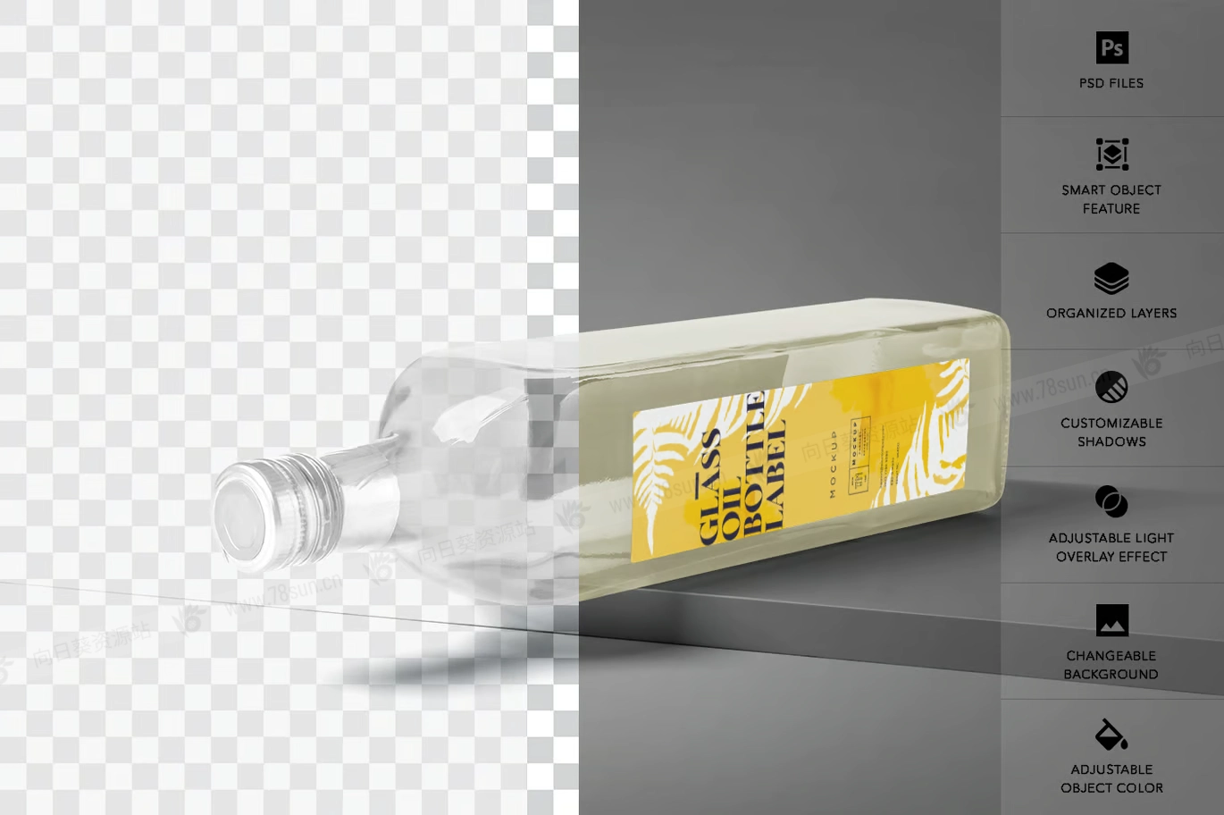 方形橄榄油玻璃瓶品牌VI效果图展示智能贴图psd设计样机,采用时尚现代的设计,让您可以精确地展示每一个细节。