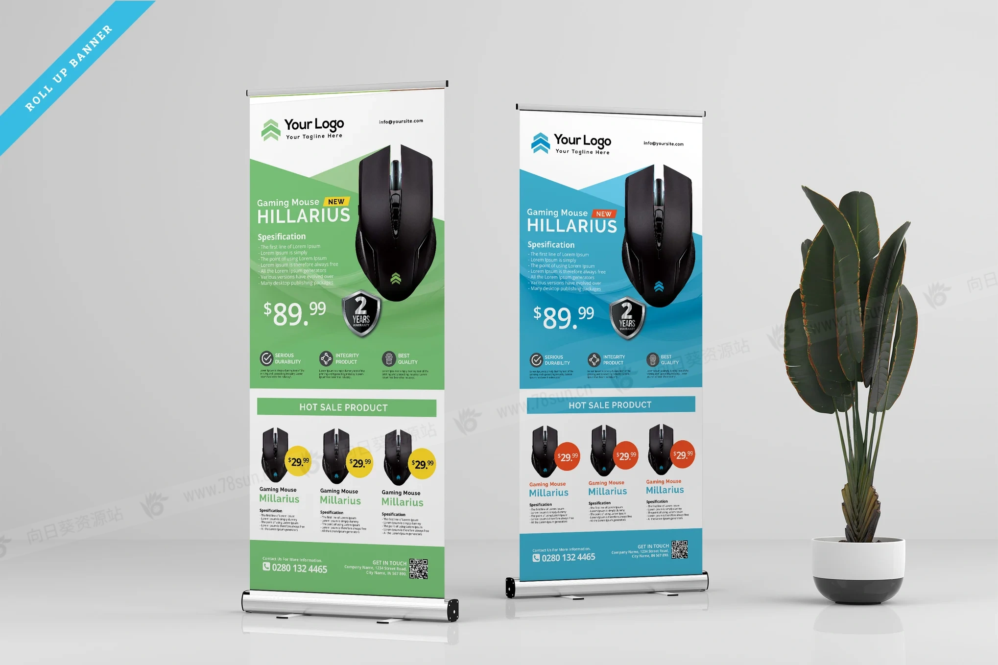高科技产品销售宣传活动展架易拉宝psd设计模板,适用于各种商业和企业用途。此横幅易于编辑、修改和自定义。所有文件都井井有条,可编辑且易于访问。
