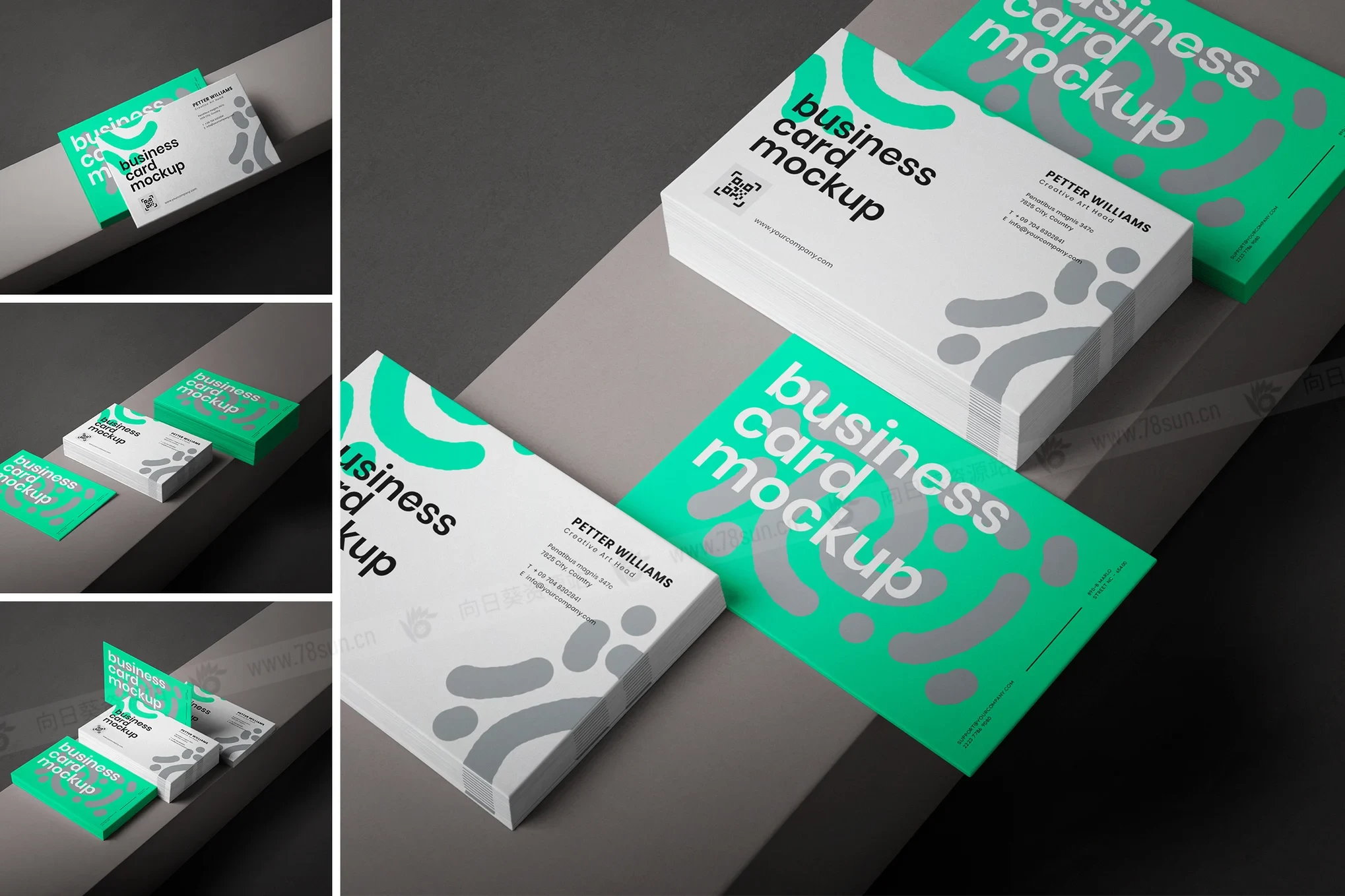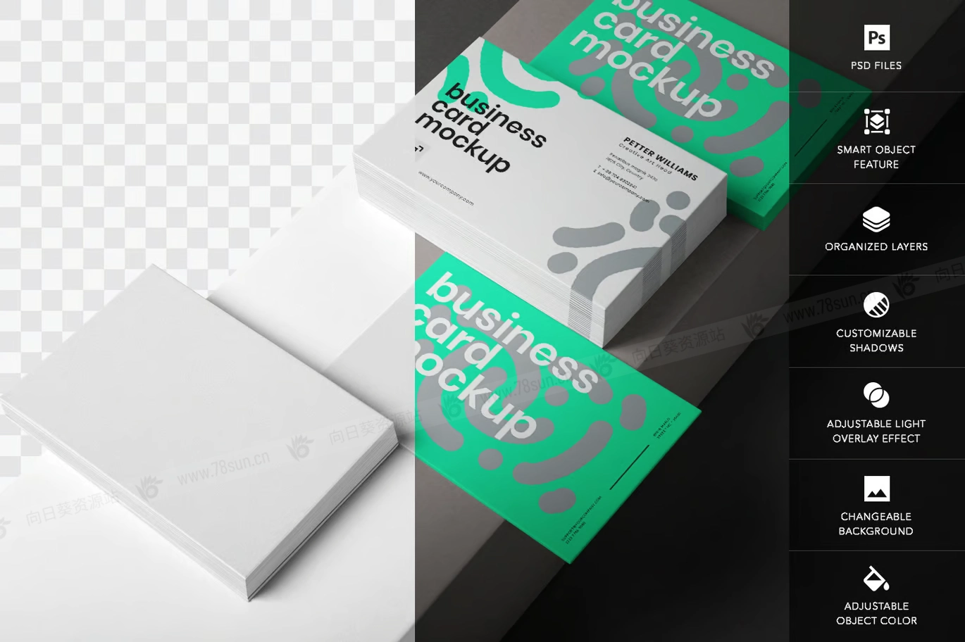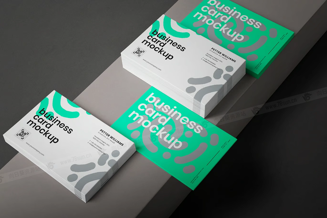 商业卡片名片VI效果图展示智能贴图psd设计样机,可定制的现代名片堆栈模型提供了逼真和专业的设置,让设计师能够以最有利的方式展示他们的作品。名片模型具有精确性和细节性,增强了演示文稿的视觉吸引力,