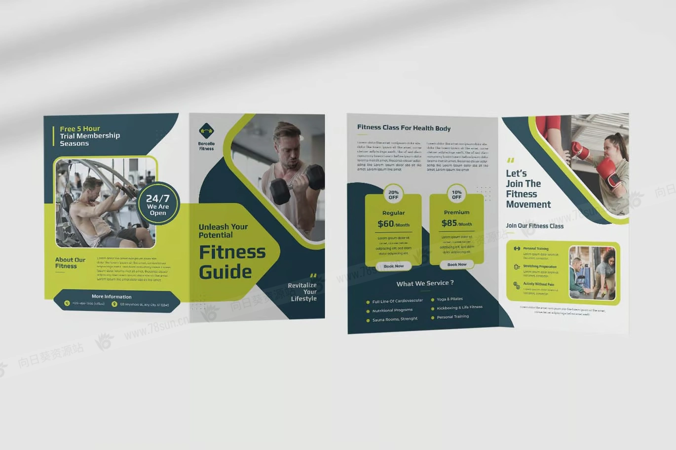 运动健身馆双折页宣传单小册子psd ai设计模板,具有完全可编辑和可定制的 PSD 和 AI 文件。还具有创意风格,适合您的任何目的。