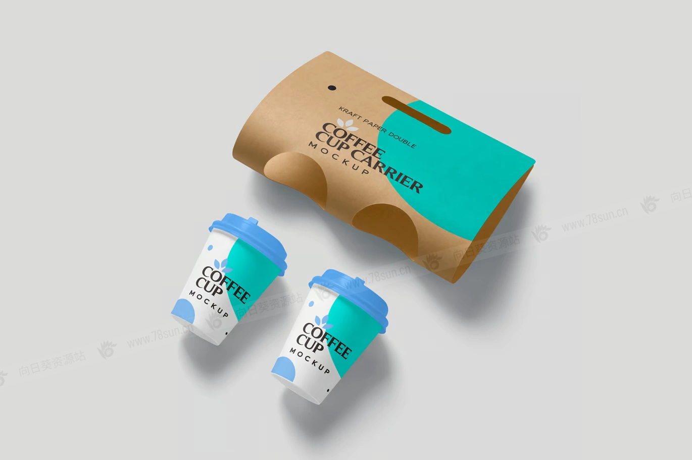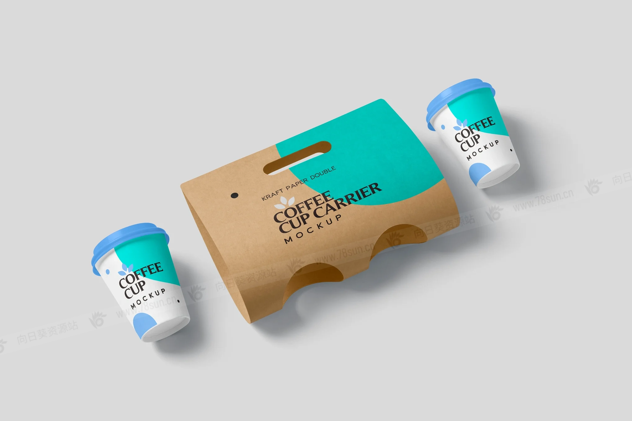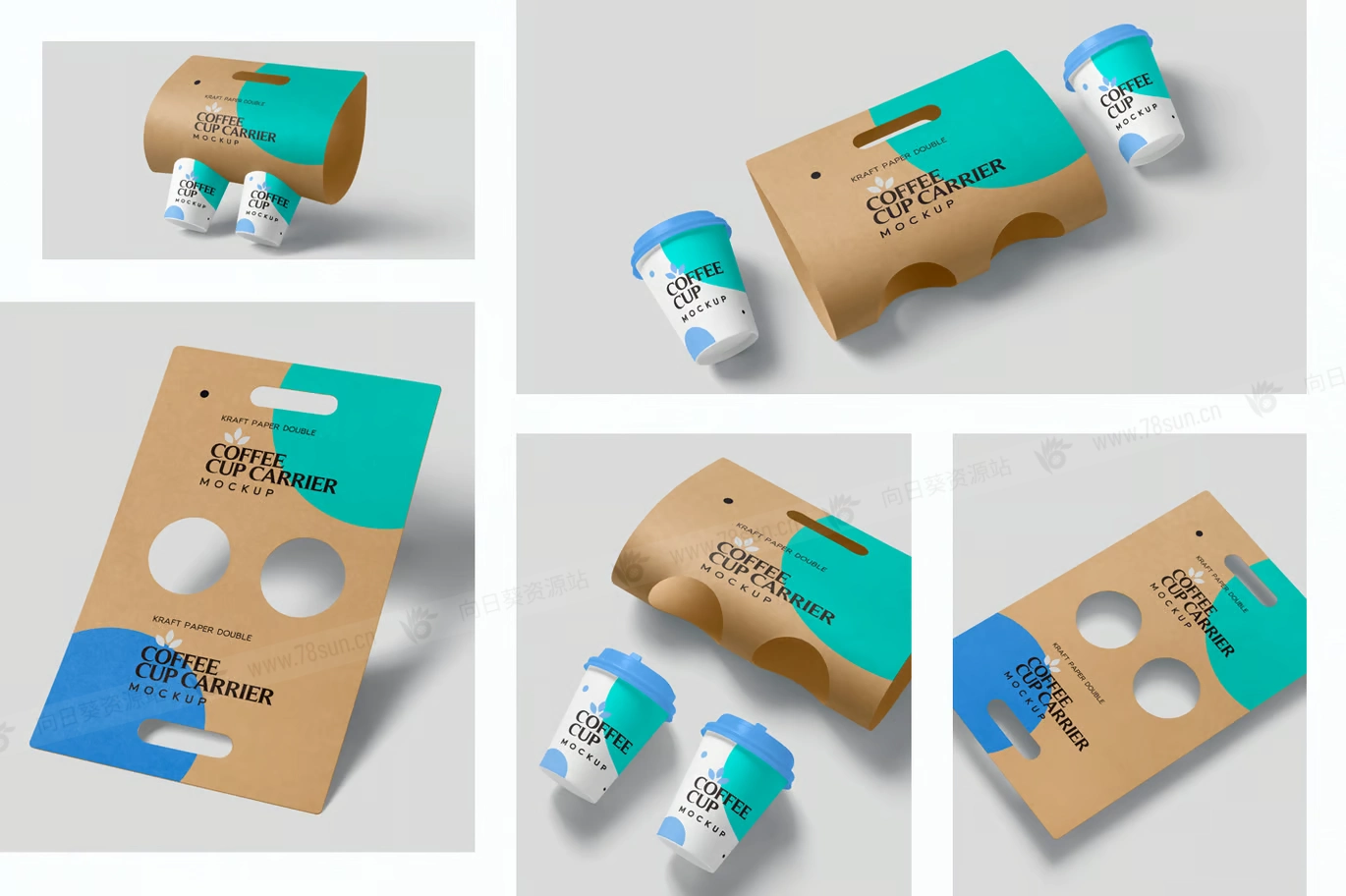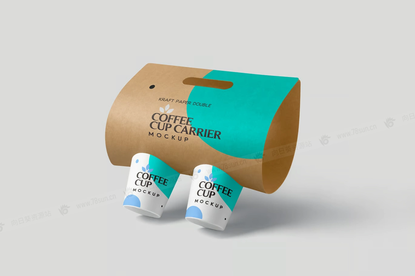 牛皮纸奶茶咖啡双杯架品牌VI效果图展示智能贴图psd设计样机,提供两个带有牛皮纸载体卡的一次性杯子。具有智能对象选项和命名良好的图层,用于自定义设计、颜色、效果和背景。这些模型最适合咖啡馆、餐厅和外卖杯品牌设计。