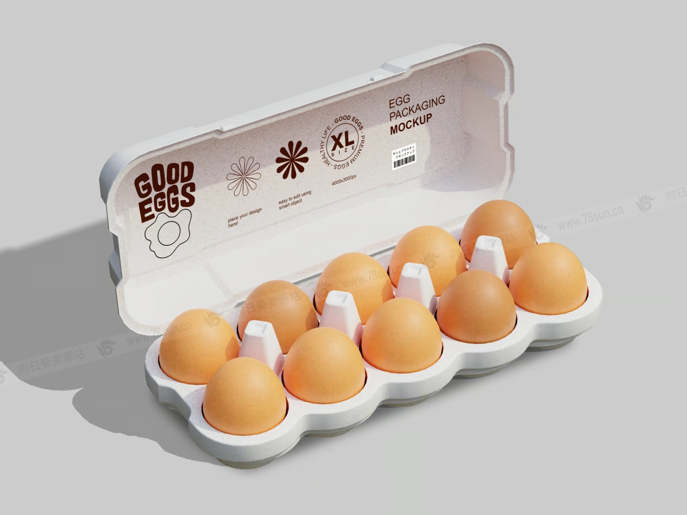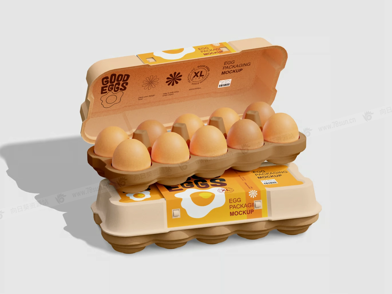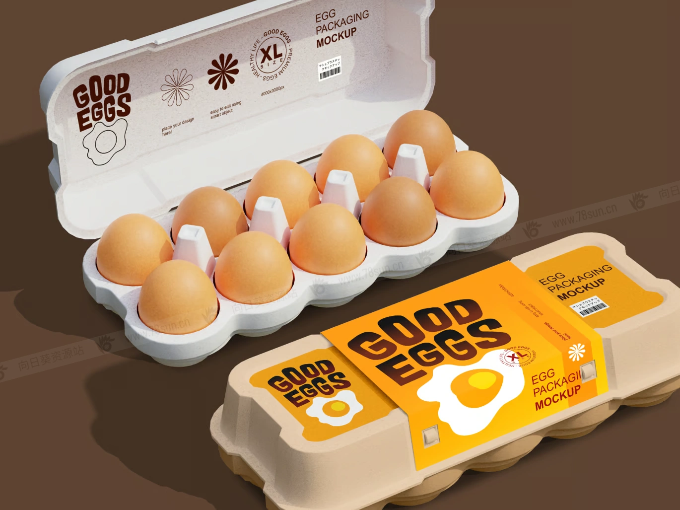 鸡蛋包装盒品牌VI效果图展示智能贴图psd设计样机,这是在干净、逼真的环境中展示您的包装设计的理想平台。无论您是为农场、杂货店还是环保包装进行品牌推广,此模型都能以自然的吸引力突出您的设计细节。
