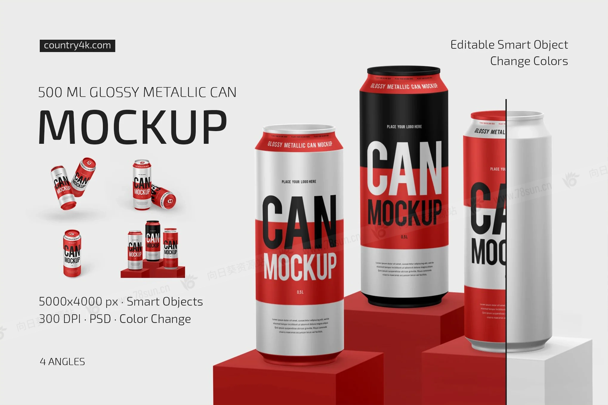500ml亮面金属啤酒罐品牌VI效果图展示智能贴图psd设计样机,展示您的徽标、品牌等。毕竟,它们是以高分辨率制作的。智能对象可以节省大量时间。只需点击智能对象几次,添加您自己的图形并保存结果。文件具有良好的图层结构,分为多个文件夹。