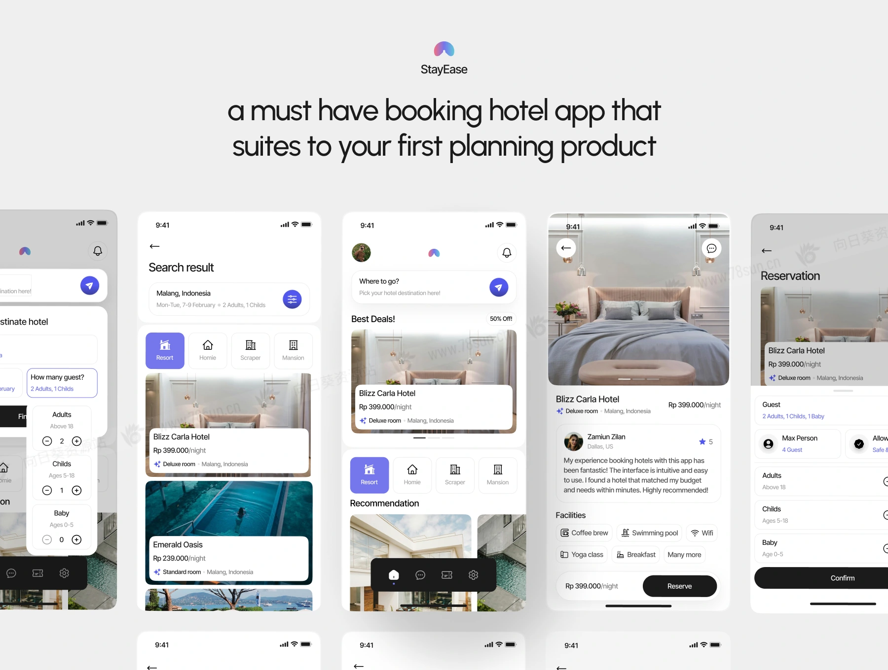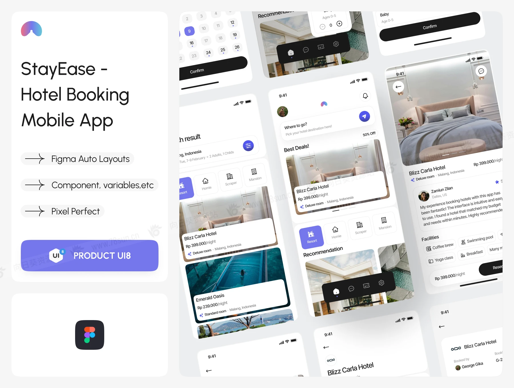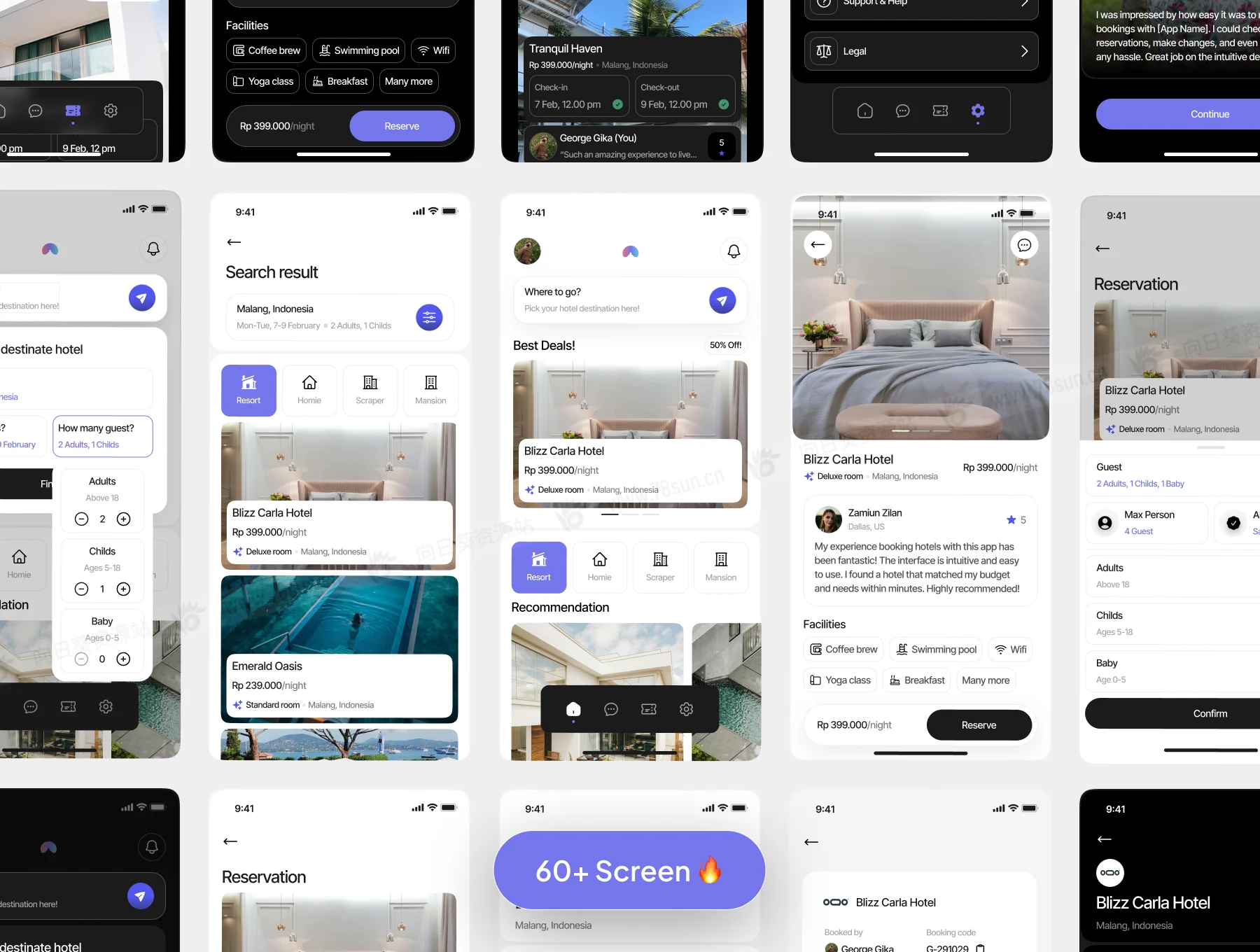 暗亮色酒店预订分类列表详情app ui界面设计fig源文件模板,具有自动布局、变量和组件,使设计过程变得轻松。拥有 60 多个设计精美的屏幕,涵盖了您预订过程的方方面面。它与 Figma 兼容,提供高度的可定制性,允许您定制每个元素以适应您独特的品牌和风格。