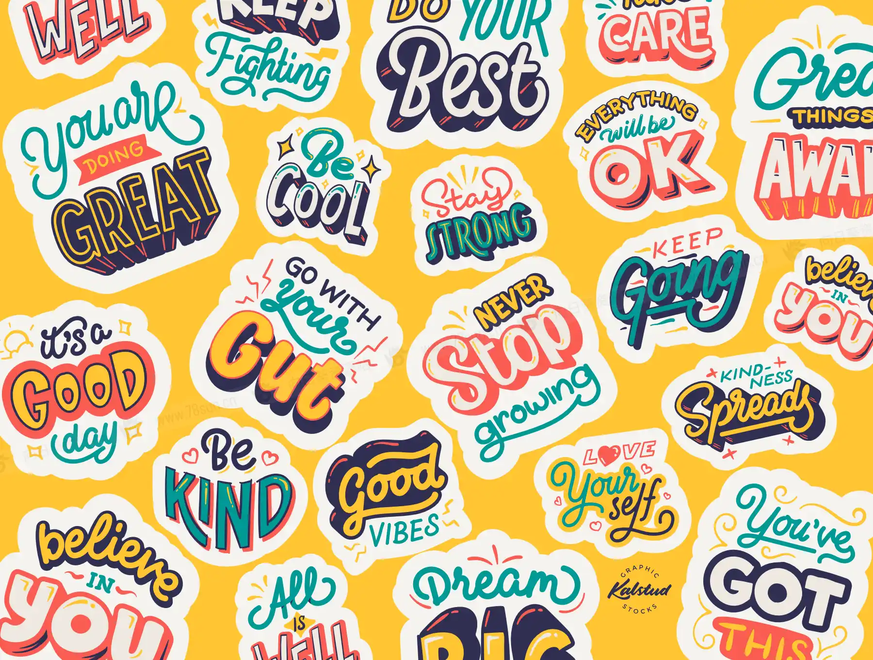 doodle风描边可爱3D立体刻字矢量图形贴纸插画ai设计模板,这是精美手绘字体的优质积极引言集合。这个多功能包包括 20 多个刻字引言。