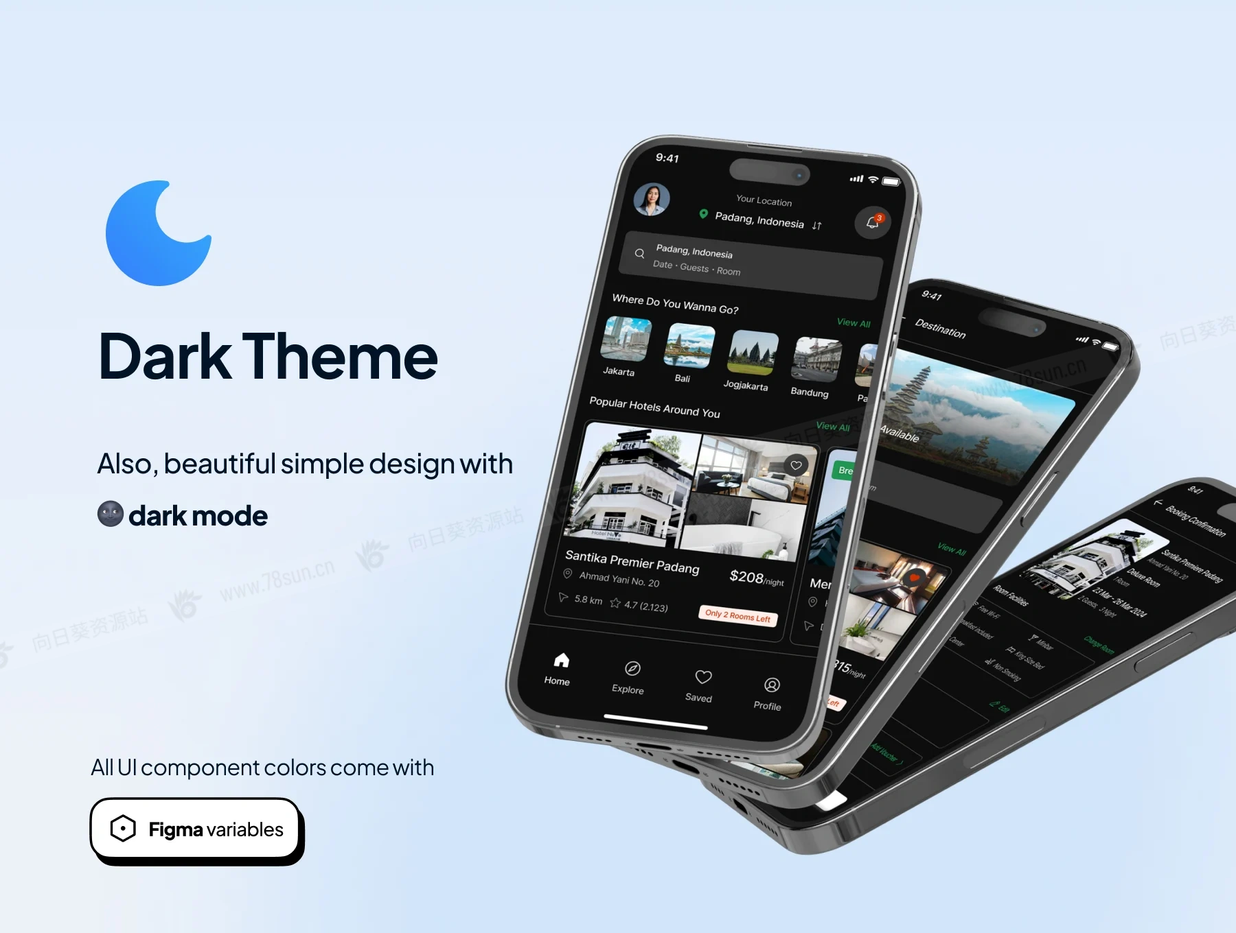 酒店预订详情介绍分类列表app ui界面设计fig源文件模板。这个全面的 UI 套件包括基本的设计元素和完整的应用程序流程,使您能够快速有效地构建您的酒店预订应用程序。