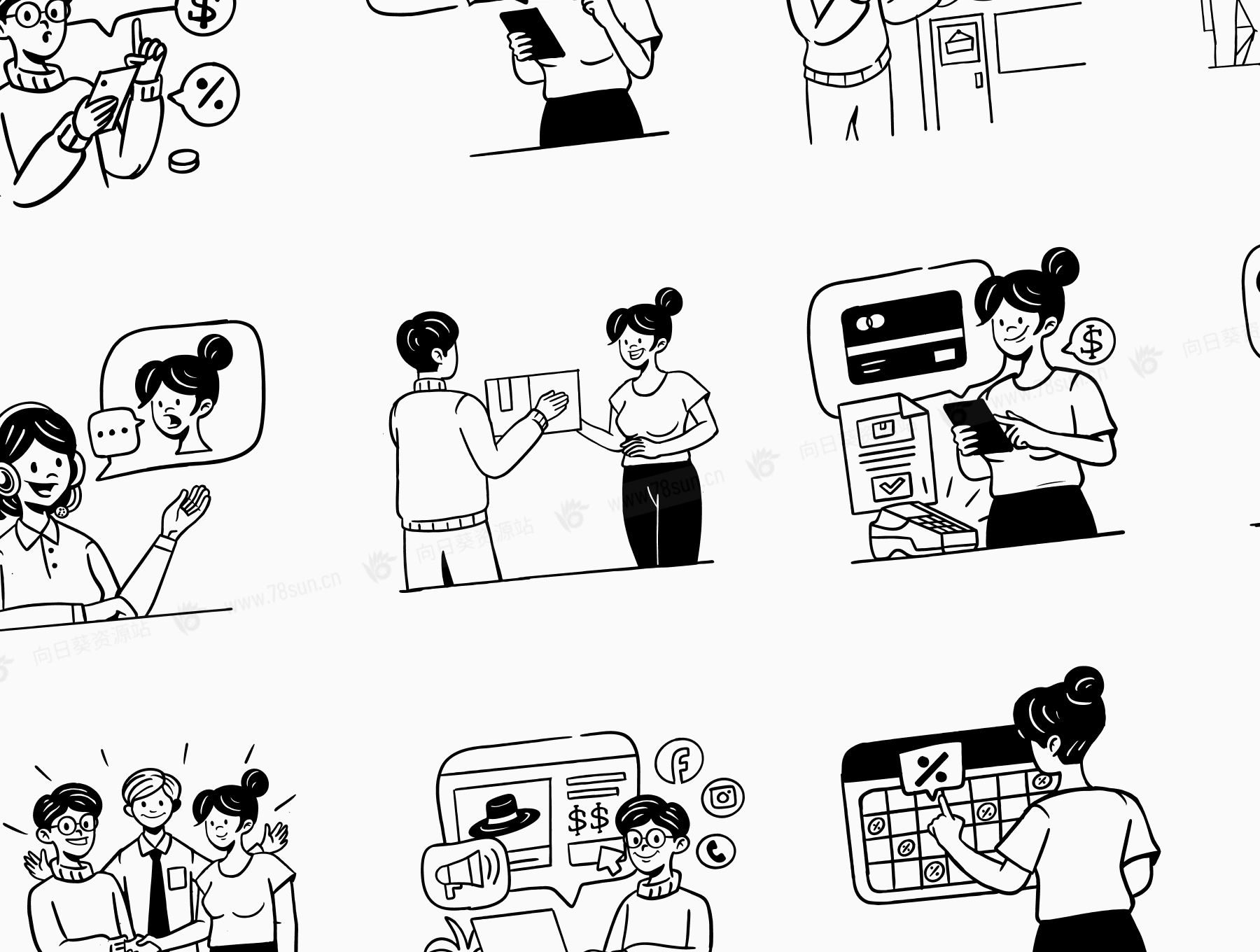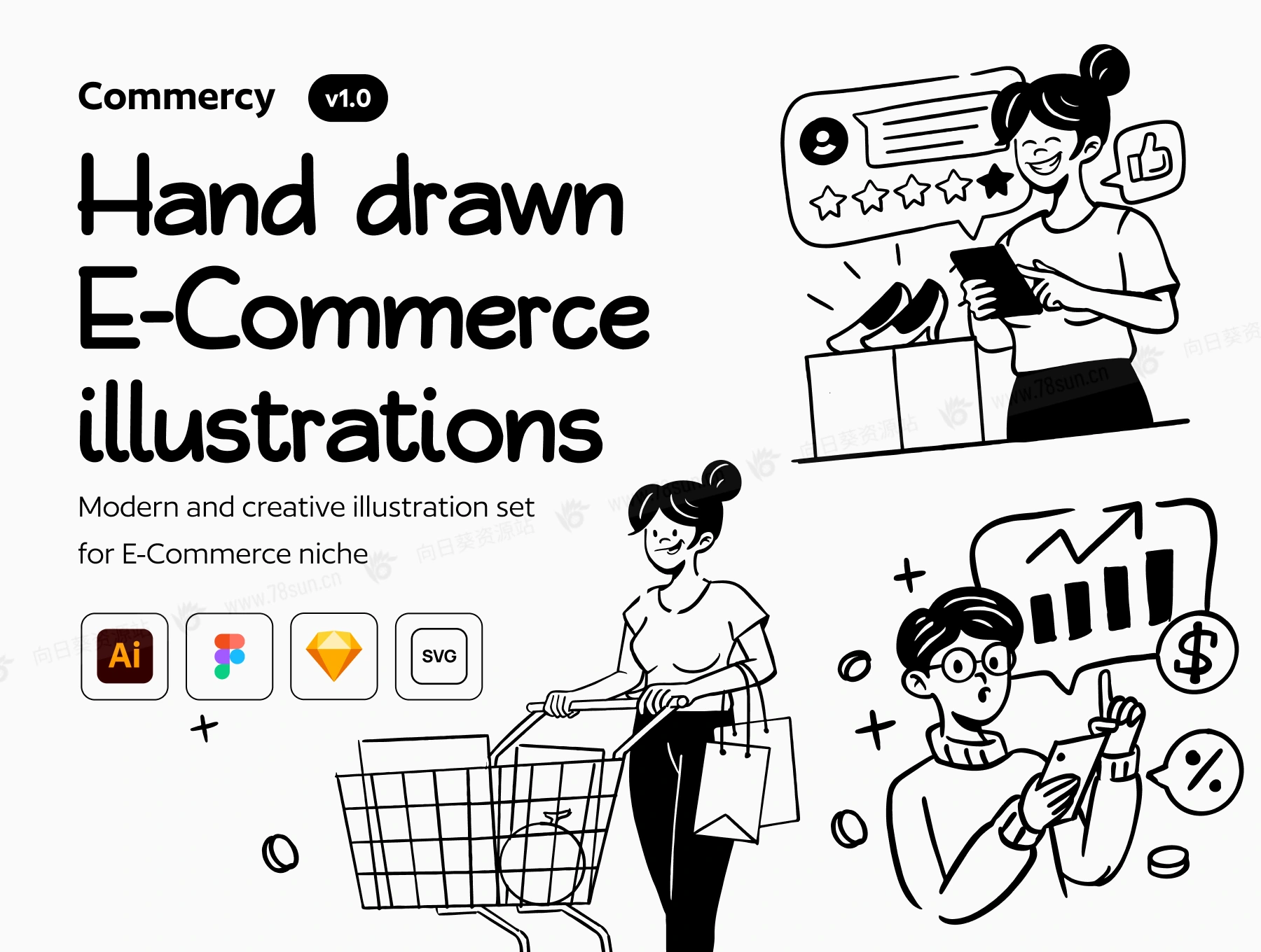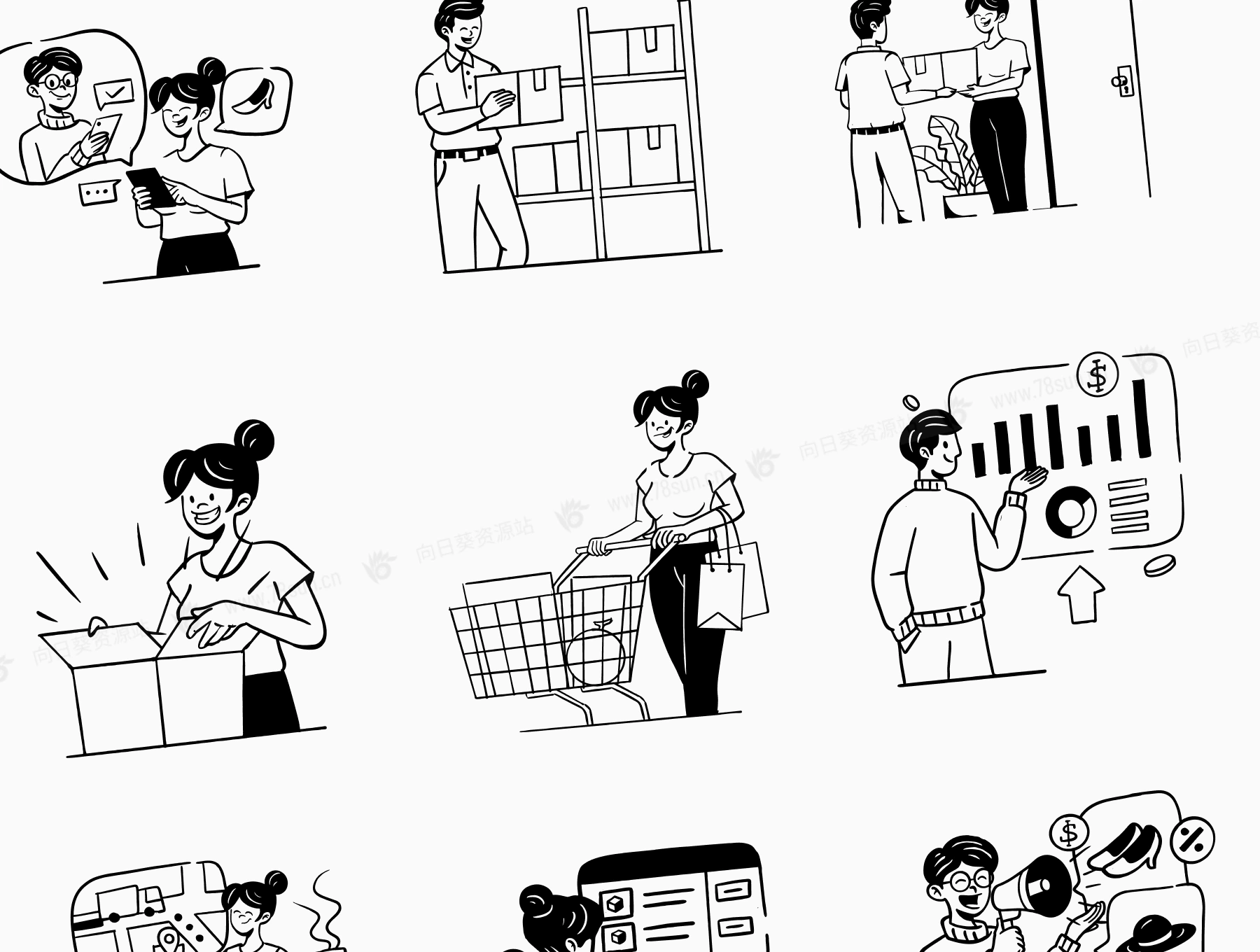 手绘电子商务插画矢量图形ai sketch fig设计元素。非常适合 UI/UX 设计、演示、广告等等。