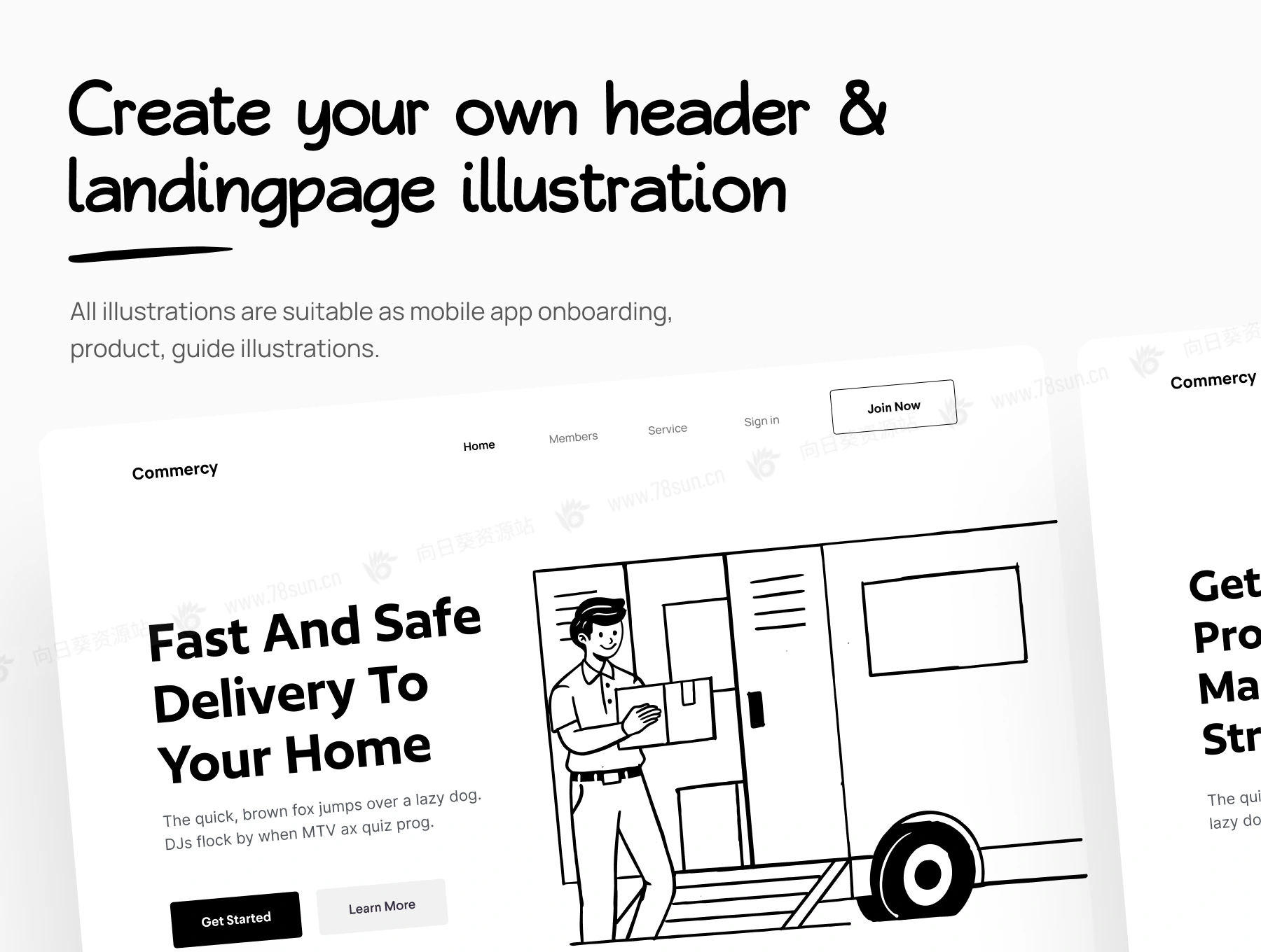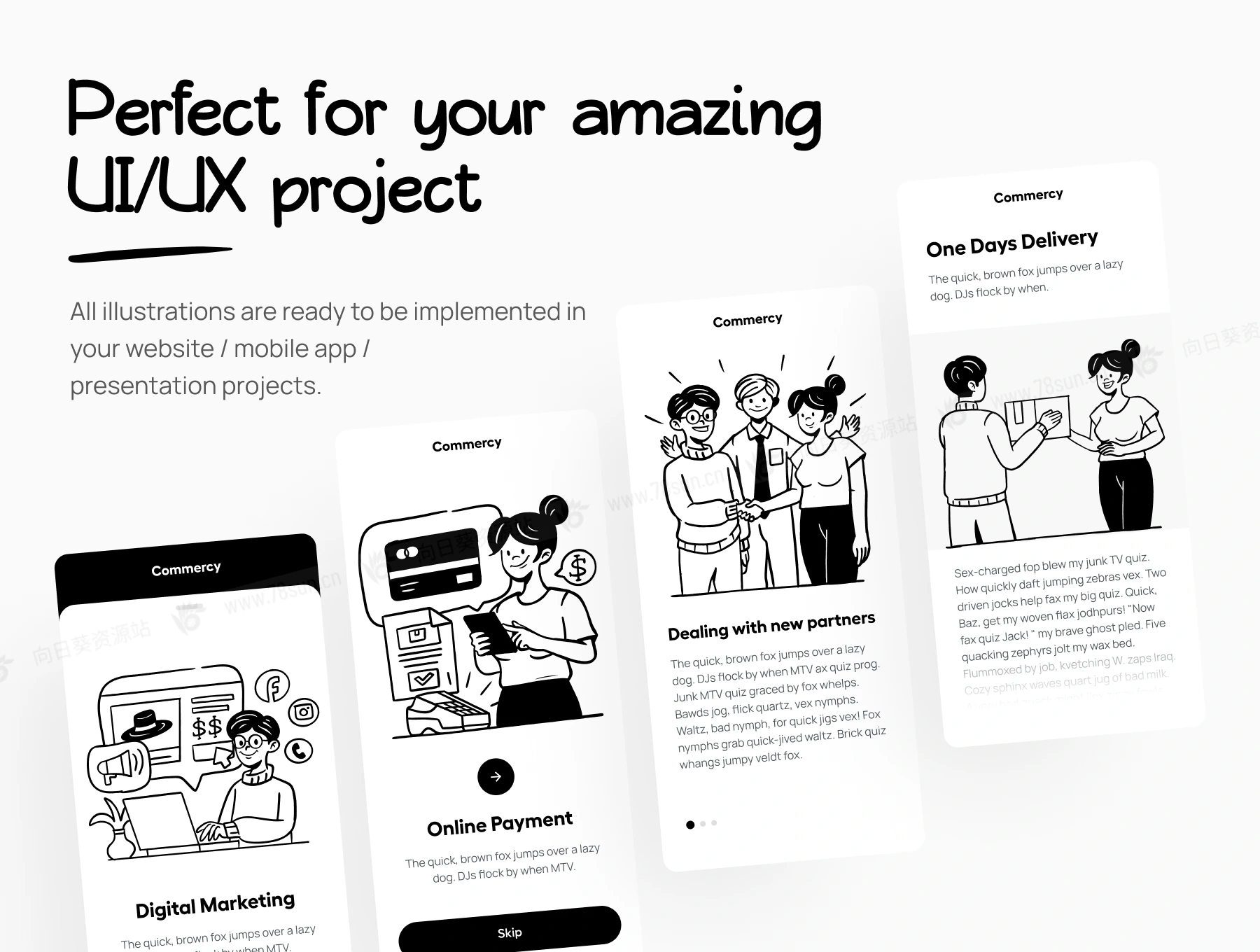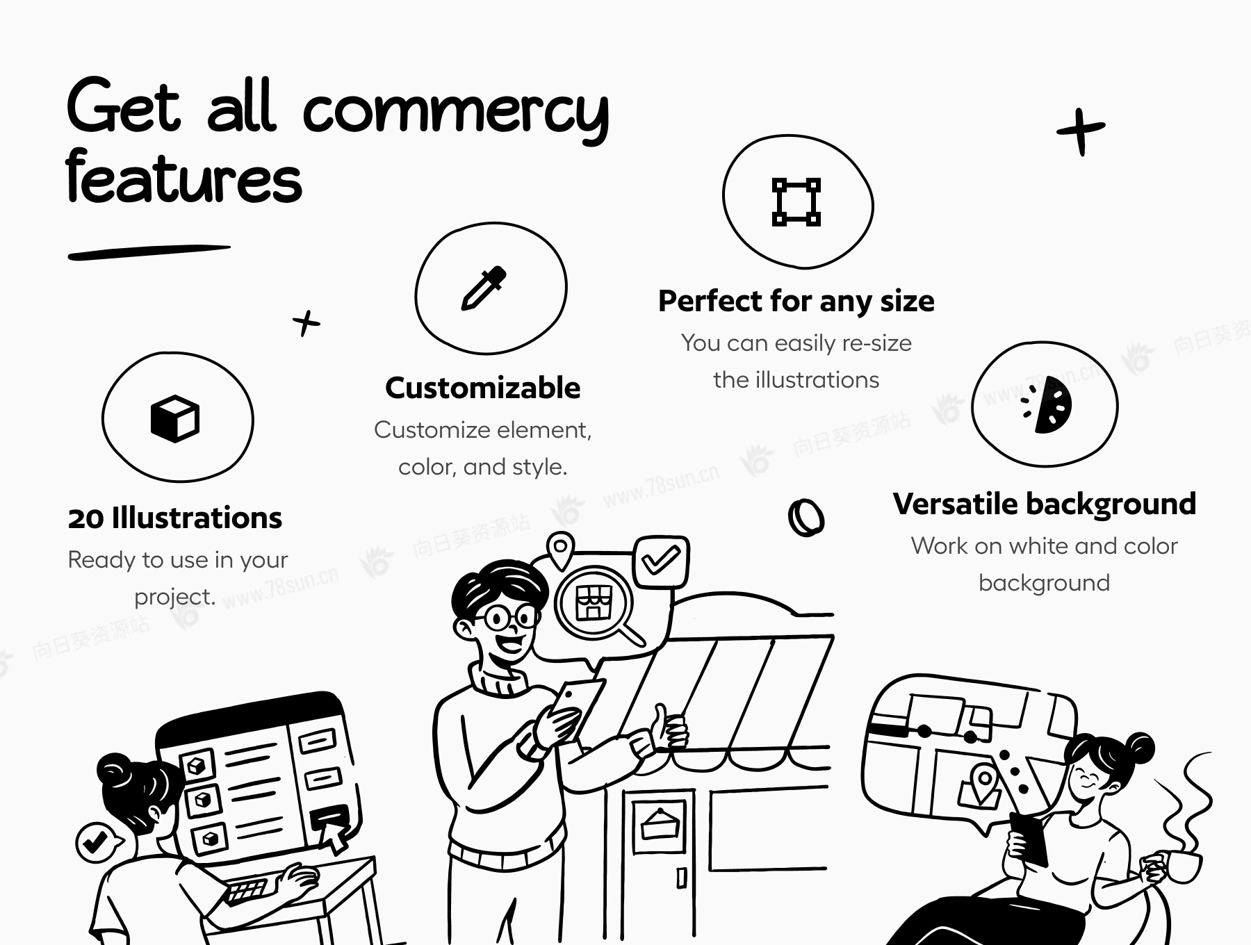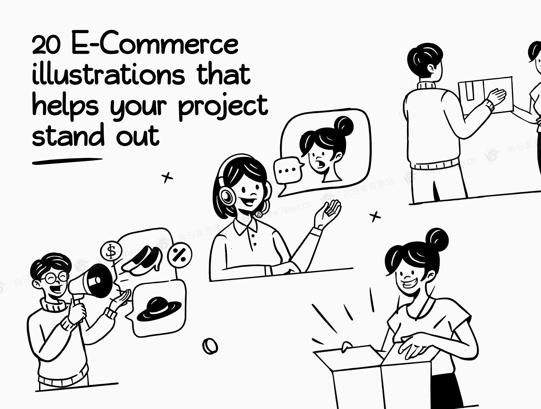 手绘电子商务插画矢量图形ai sketch fig设计元素。非常适合 UI/UX 设计、演示、广告等等。