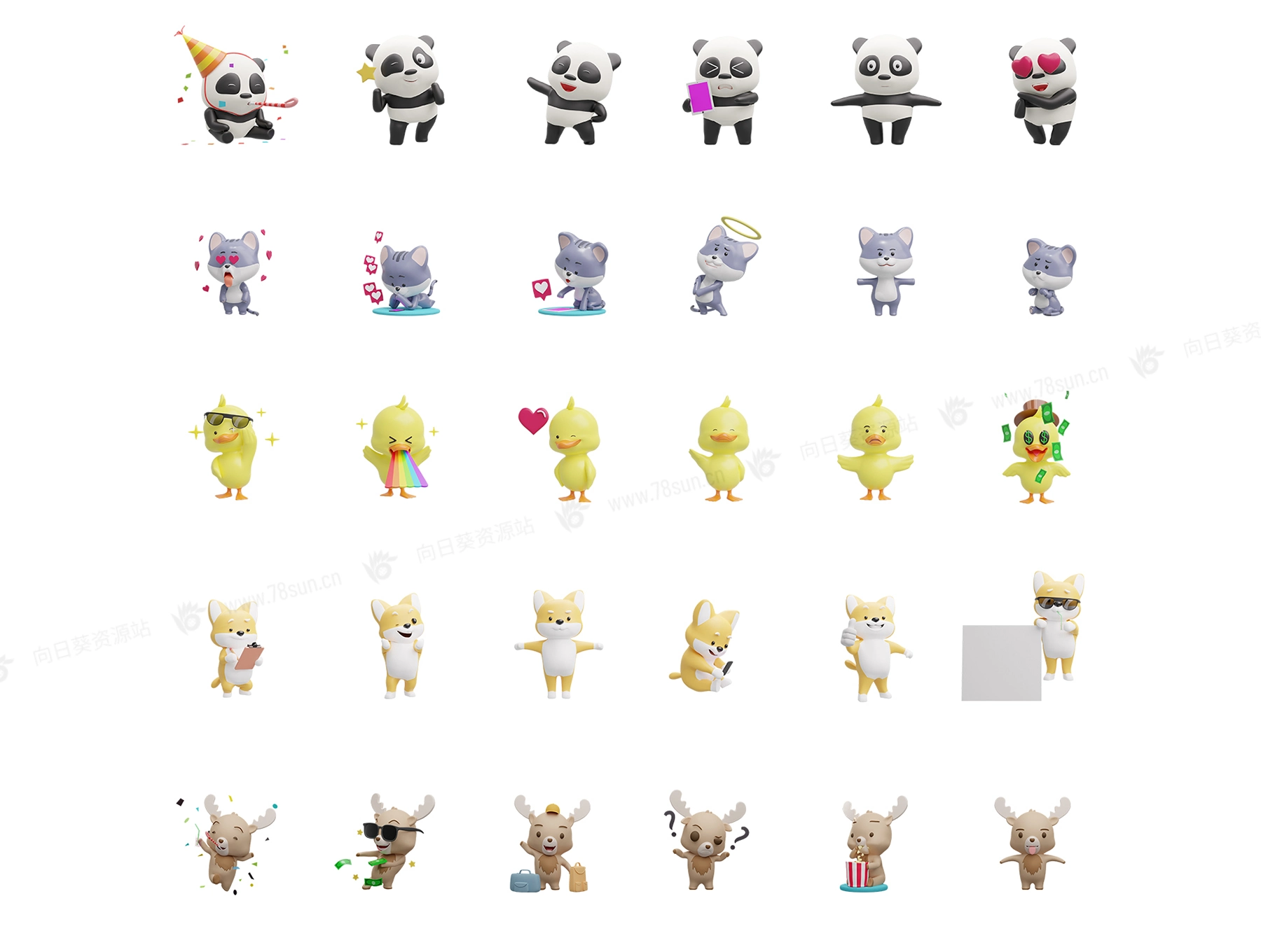 可爱3D立体动物熊猫鸭子狗鹿猫矢量图形blend设计模板。您可以在您的产品中使用它们或用于营销目的(社交媒体帖子、登录页面、博客、时事通讯等)。