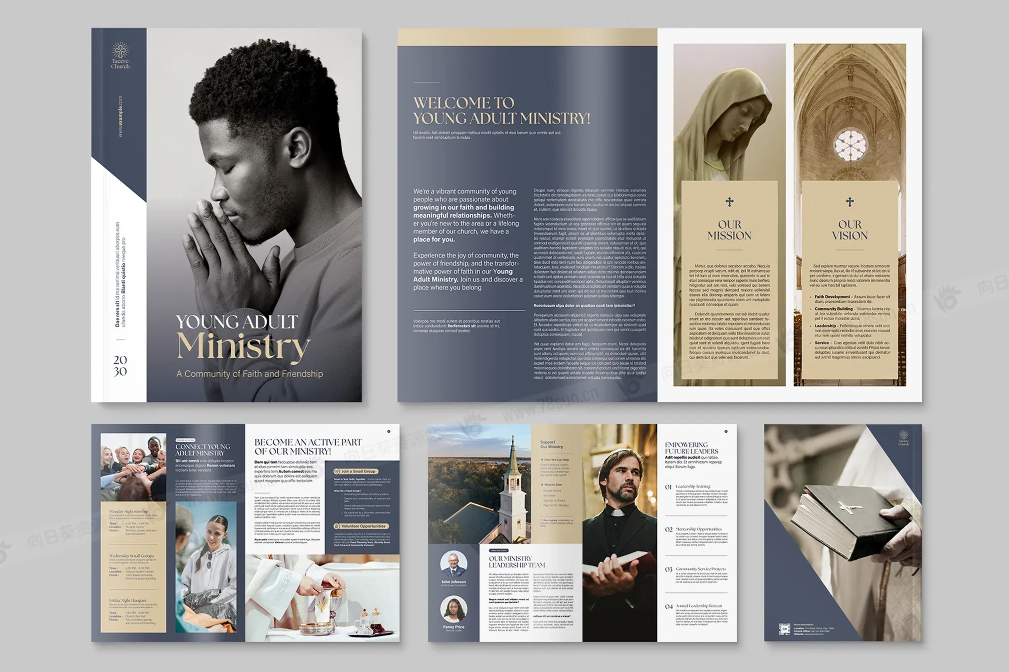 学校教育文化名胜古迹宣传手册杂志画册indd设计模板,是教堂、学校和组织的理想选择,为创建引人入胜的小册子、传单、小册子、公告和杂志提供了专业的设计。无论是宗教活动还是教育计划,这个可定制的模板都能让您吸引观众并有效地传播您的信息。