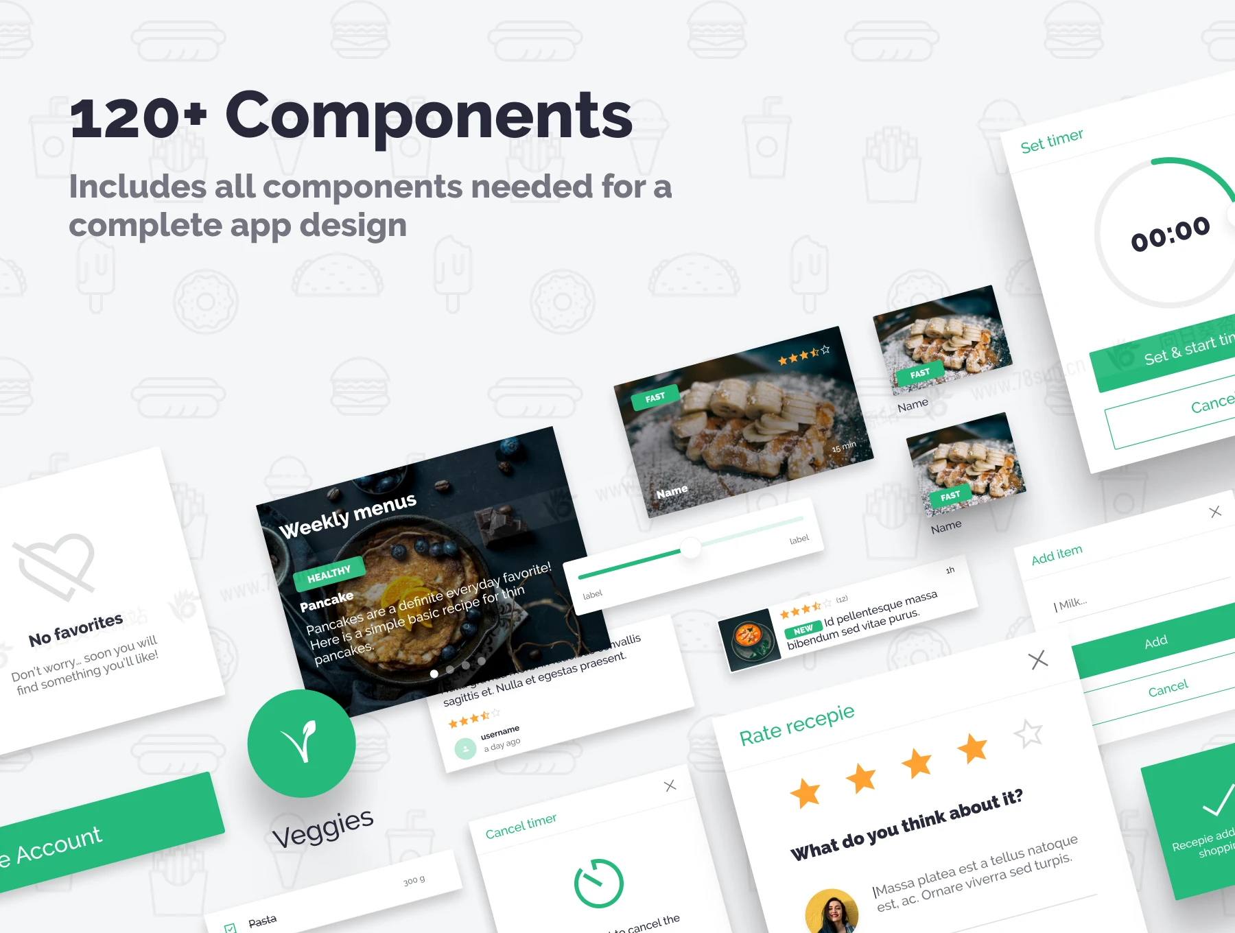 美食外卖订餐送餐食谱菜谱列表详情app ui界面设计fig源文件模板,包含 60+ 高品质美食灵感和食谱应用程序屏幕,可加速和促进您的设计过程,并帮助您开发出色的体验。主要功能是每周菜单、搜索食谱、最喜欢的食谱和购物清单。此 UI 套件中的所有组件(完全可自定义) 声明:本站所有资源版权均属于原作者所有,这里所提供资源均只能用于参考学习用,请勿直接商用。若由于商用引起版权纠纷,一切责任均由使用者承担。更多说明请参考 VIP介绍。