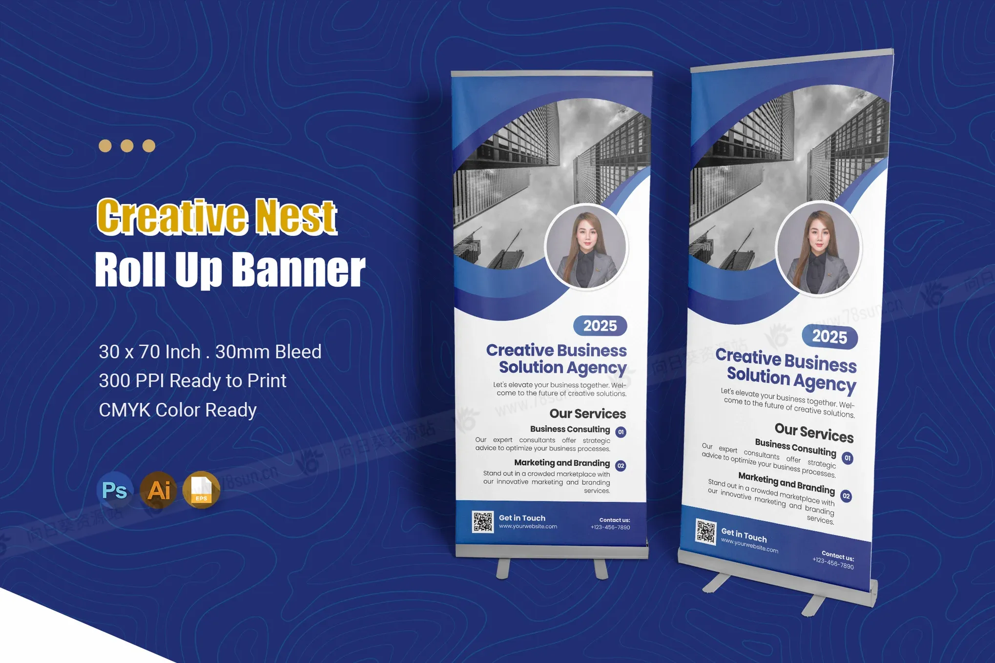 商务企业公司营销宣传活动展架易拉宝psd ai设计模板,可用于有效地展示图片和内容。