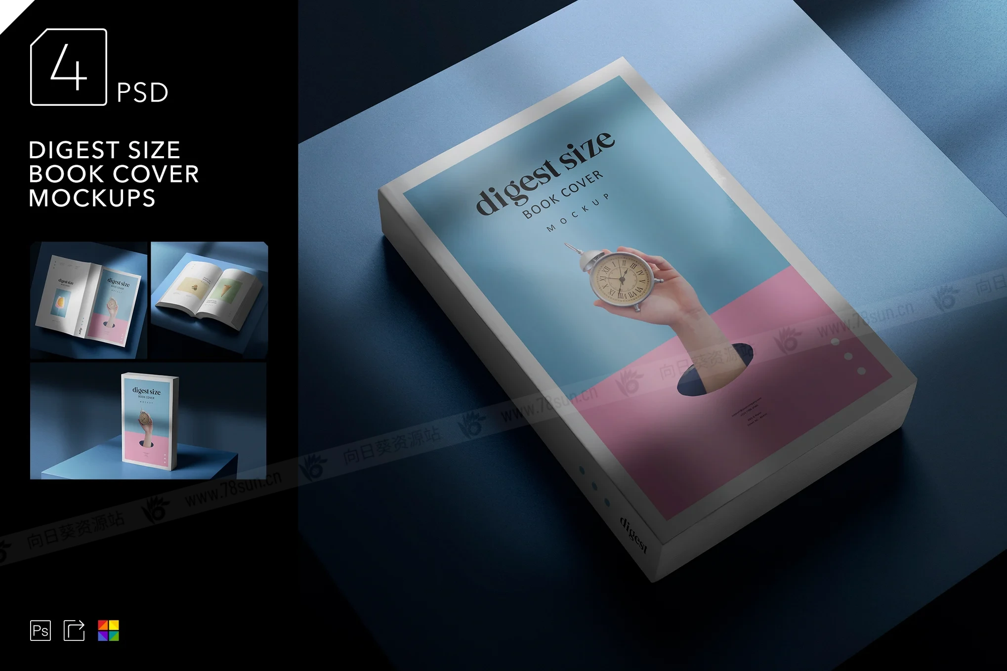A4书籍杂志封面封底内页VI效果图展示智能贴图psd设计样机,提供了多种角度和样式,可以真实而专业地展示任何项目。每本书模型都经过精心设计,为您的创意工作提供最佳背景,