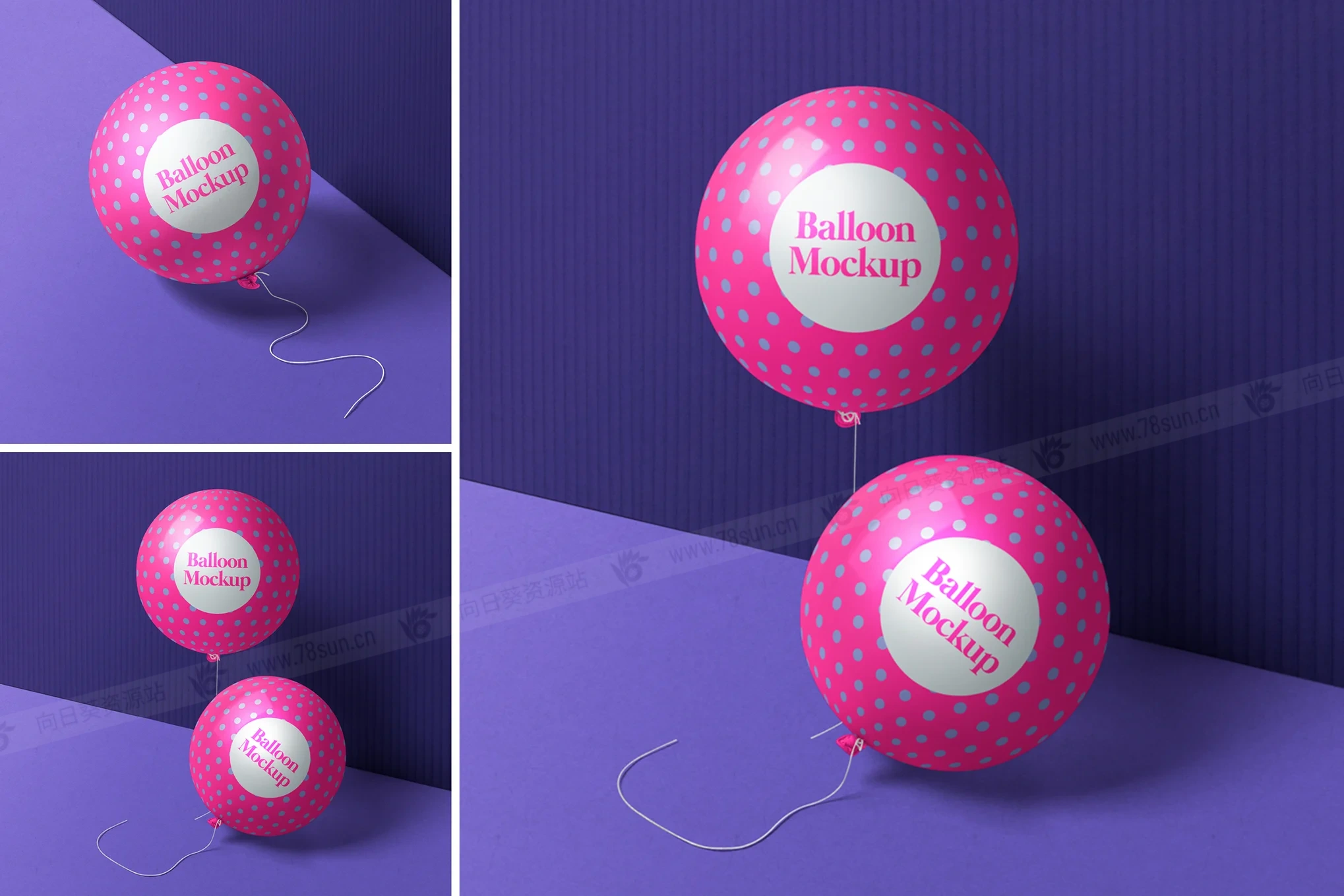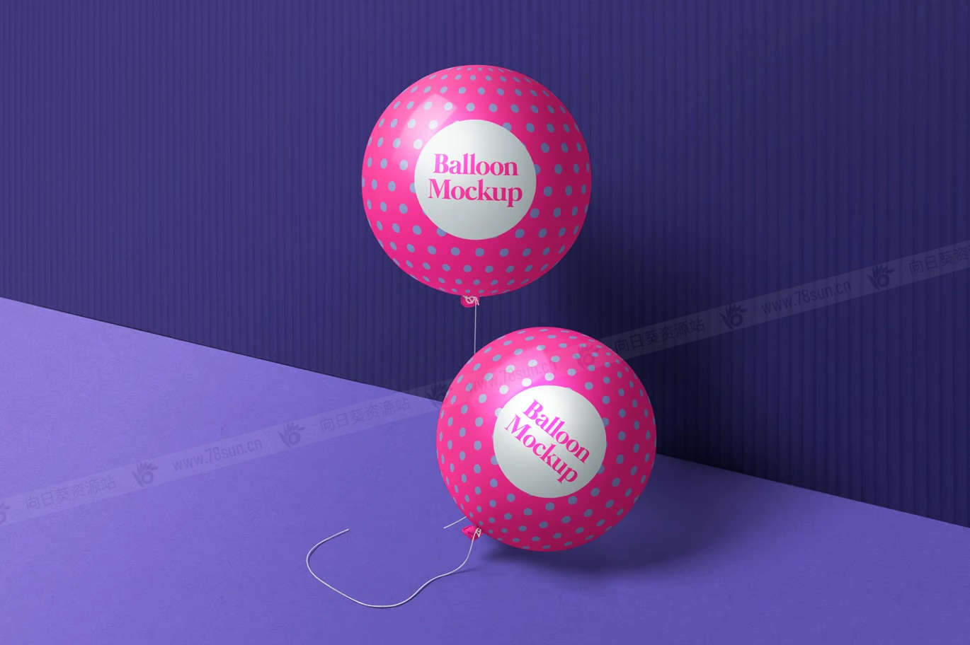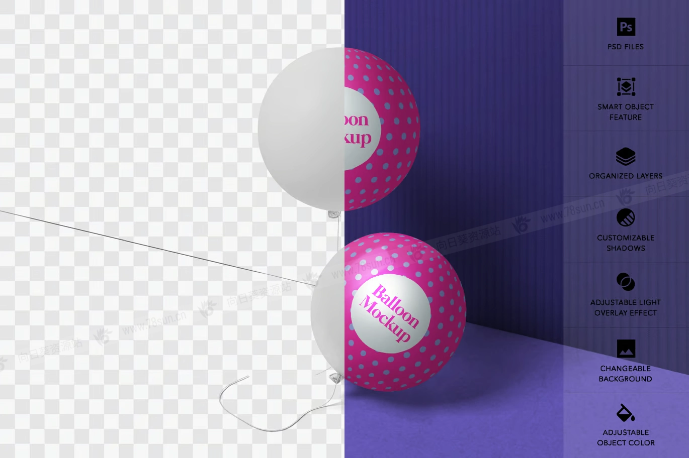 气球VI效果图展示智能贴图psd设计样机,具有可自定义颜色和图案的高分辨率气球,允许平面设计师在逼真的环境中模拟他们的作品。