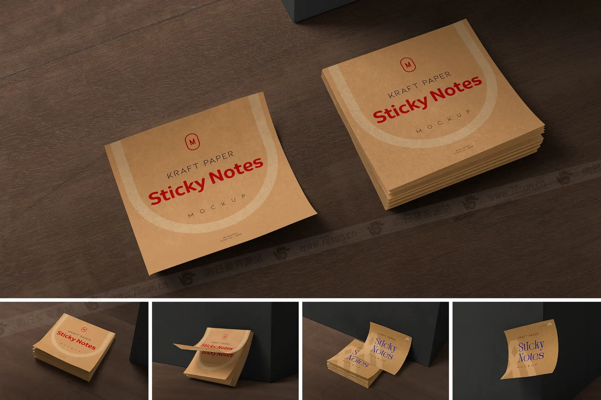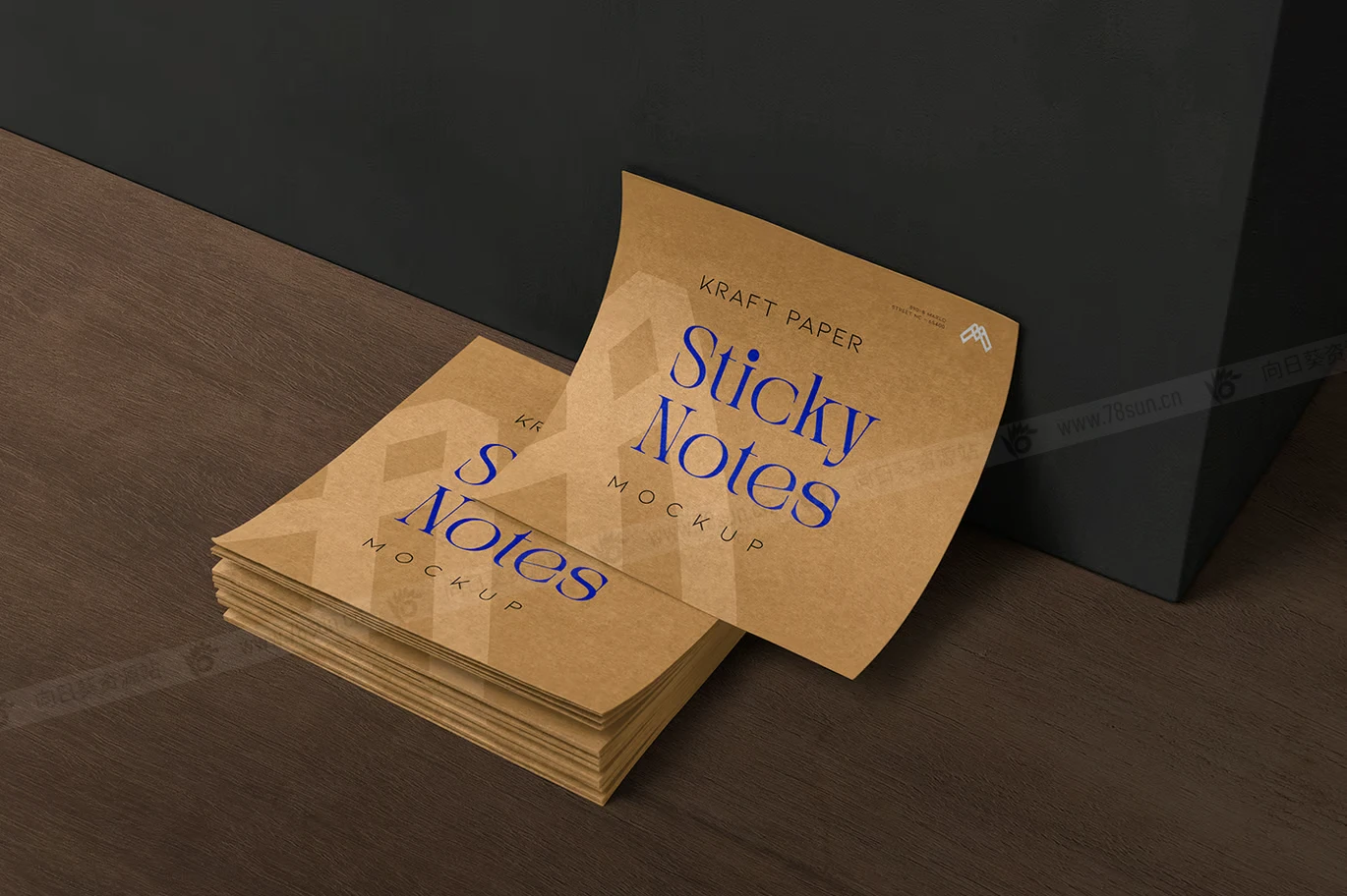 牛皮纸便签VI效果图展示智能贴图psd设计样机,具有逼真的纹理和阴影,让您的数字设计栩栩如生,非常适合展示品牌概念和个性化笔记。
