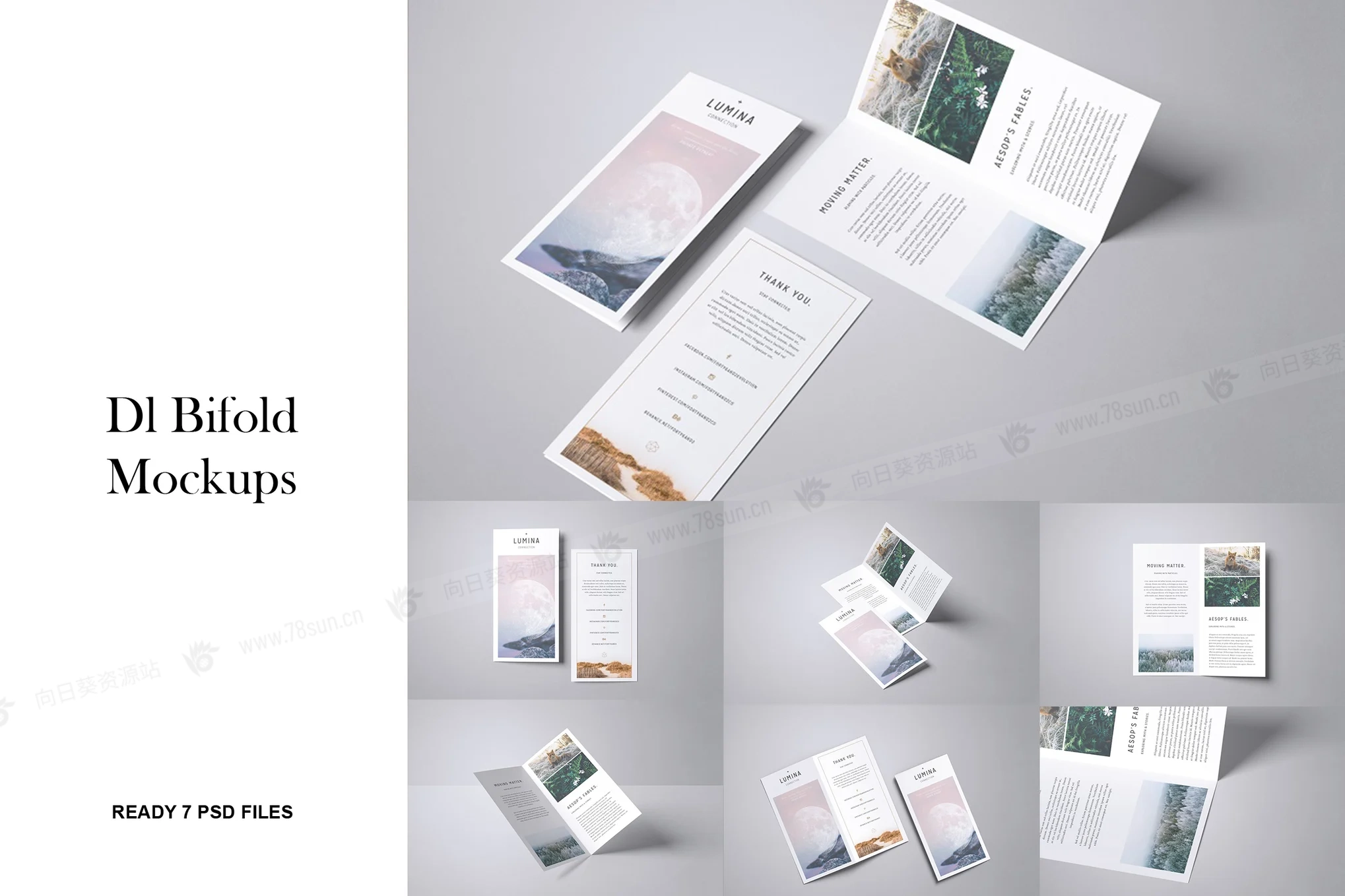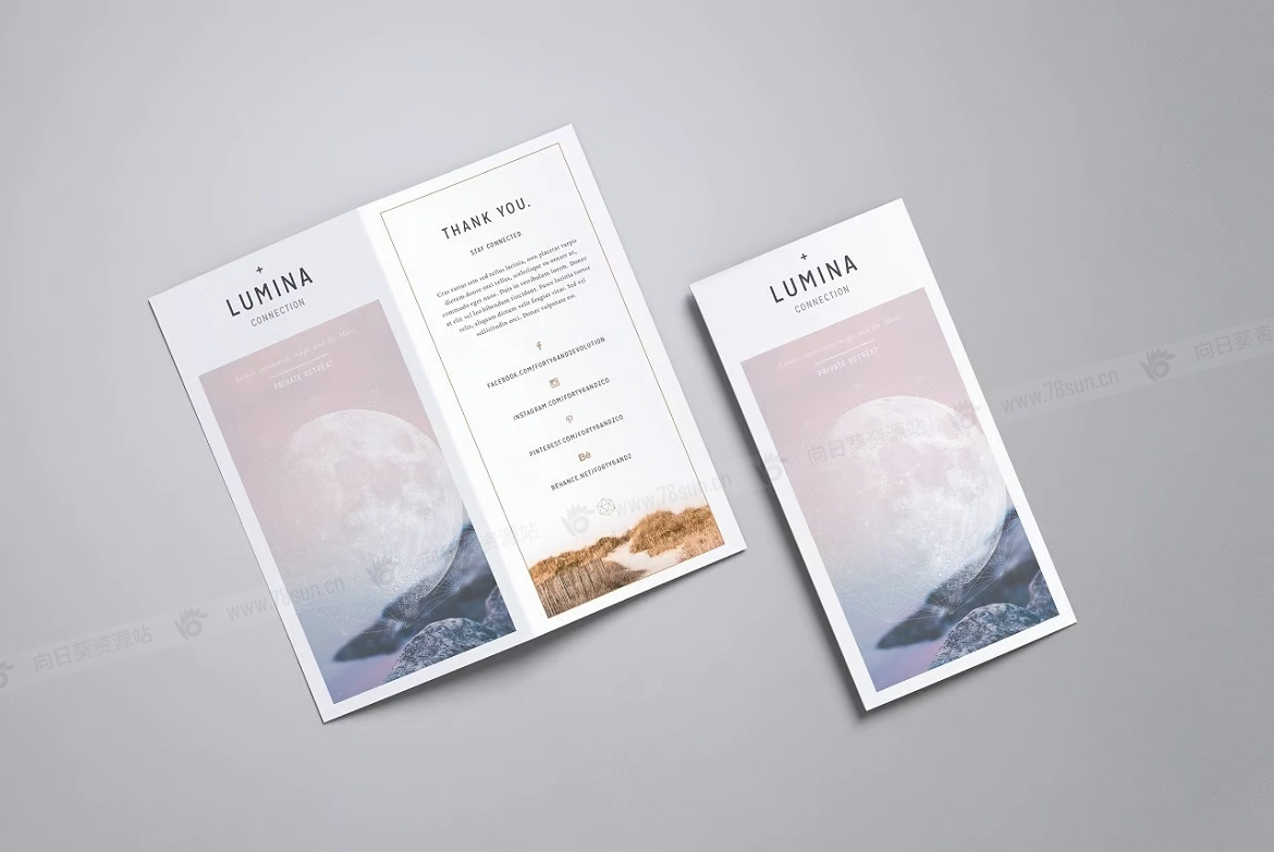 双折页宣传册小册子VI效果图展示智能贴图PSD设计样机,