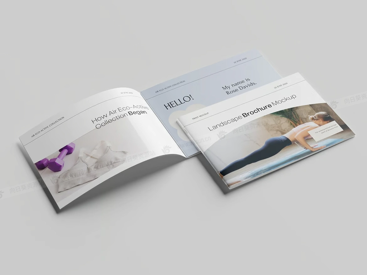 抛光横向书籍杂志画册小册子VI效果图展示智能贴图psd设计样机,以逼真的外观展示您的设计。这些模型文件使用智能对象功能,可帮助您在几秒钟内更改设计(包括 PDF 说明)。