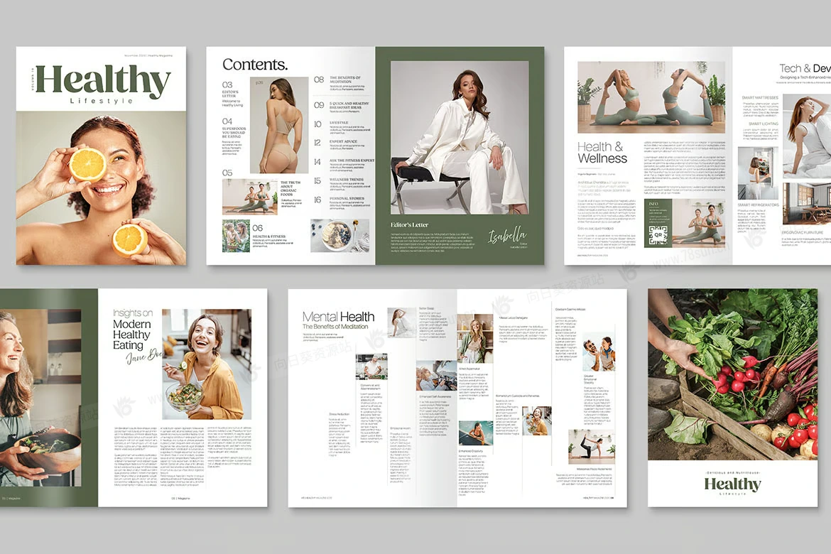 健康生活健身食品美食宣传手册杂志画册ai设计模板,非常适合健身爱好者和健康倡导者。这个别致的模板在设计时考虑到了女性,提供时尚的布局来展示健康的生活技巧。它非常适合健康杂志、生活方式手册和健康小册子,它有 Illustrator Ai 和 Vector EPS 格式。非常适合健康活动、健身计划和生活方式项目,它可以帮助您轻松传达充满活力、健康的生活方式。