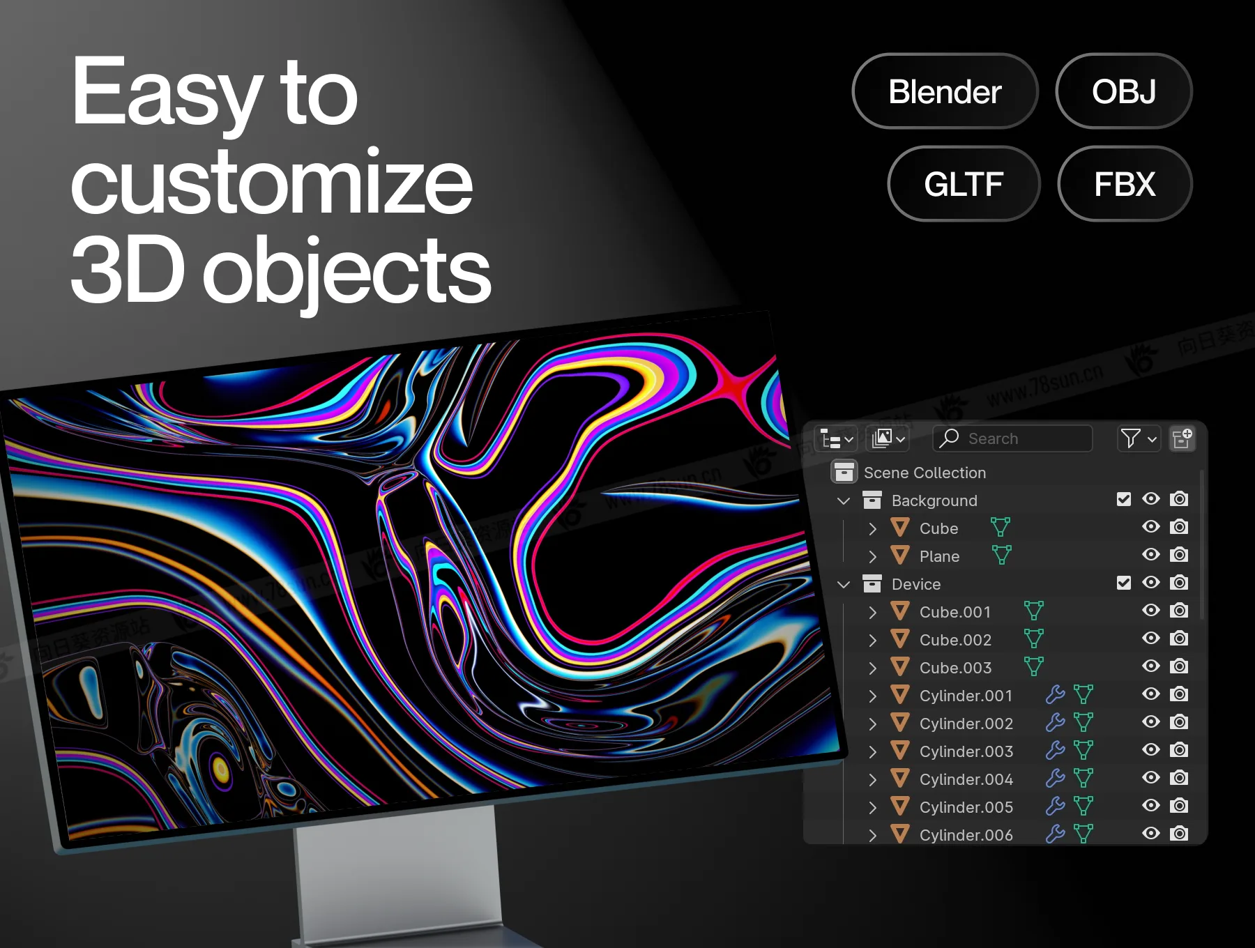 – 3D 文件(Blender、GLTF、FBX、OBJ)