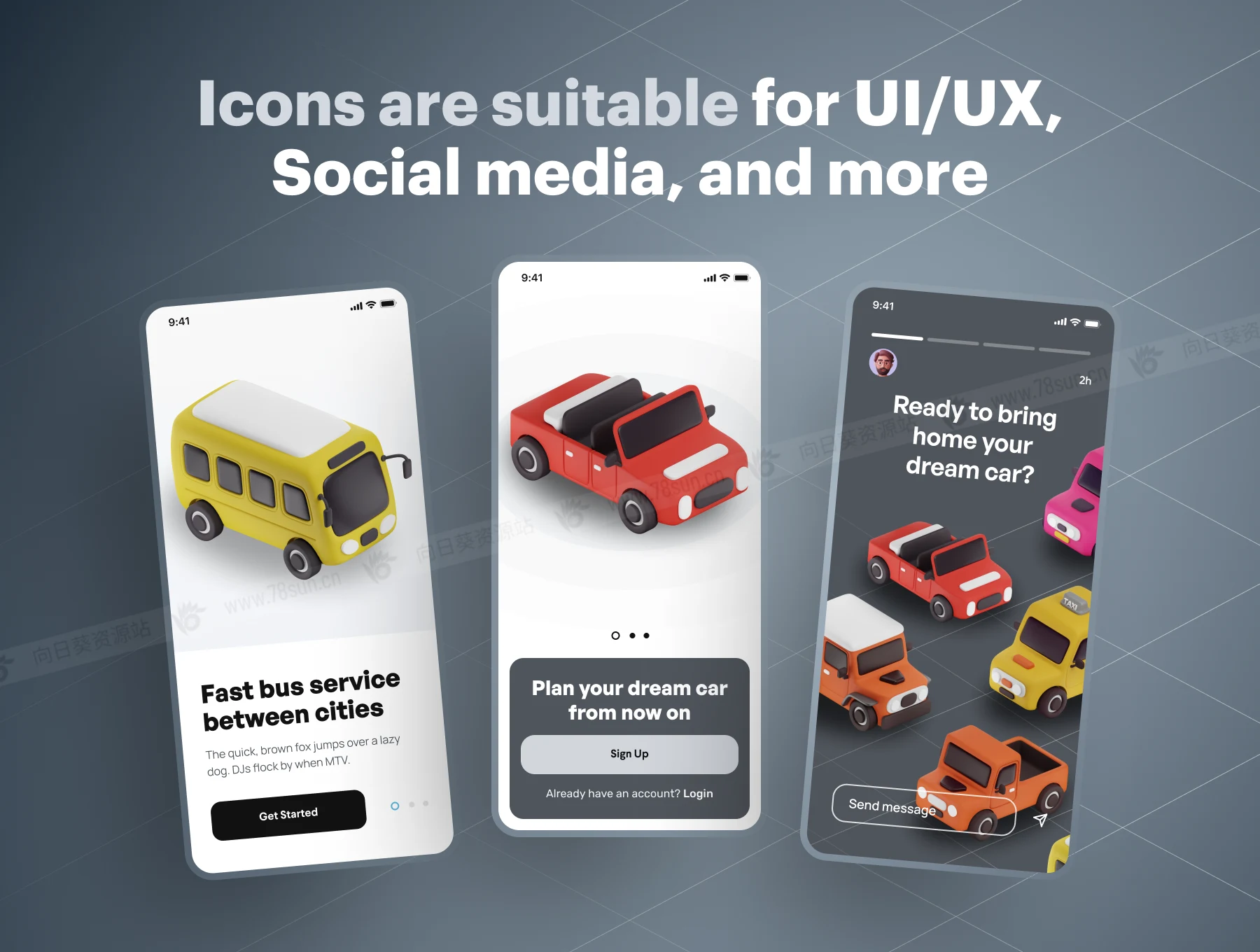 3D立体汽车交通工具运输车辆icon图标blend设计模板,易于编辑,可随时满足您的需求。使用 3D 汽车图标集使您的下一个产品和项目更加独特。