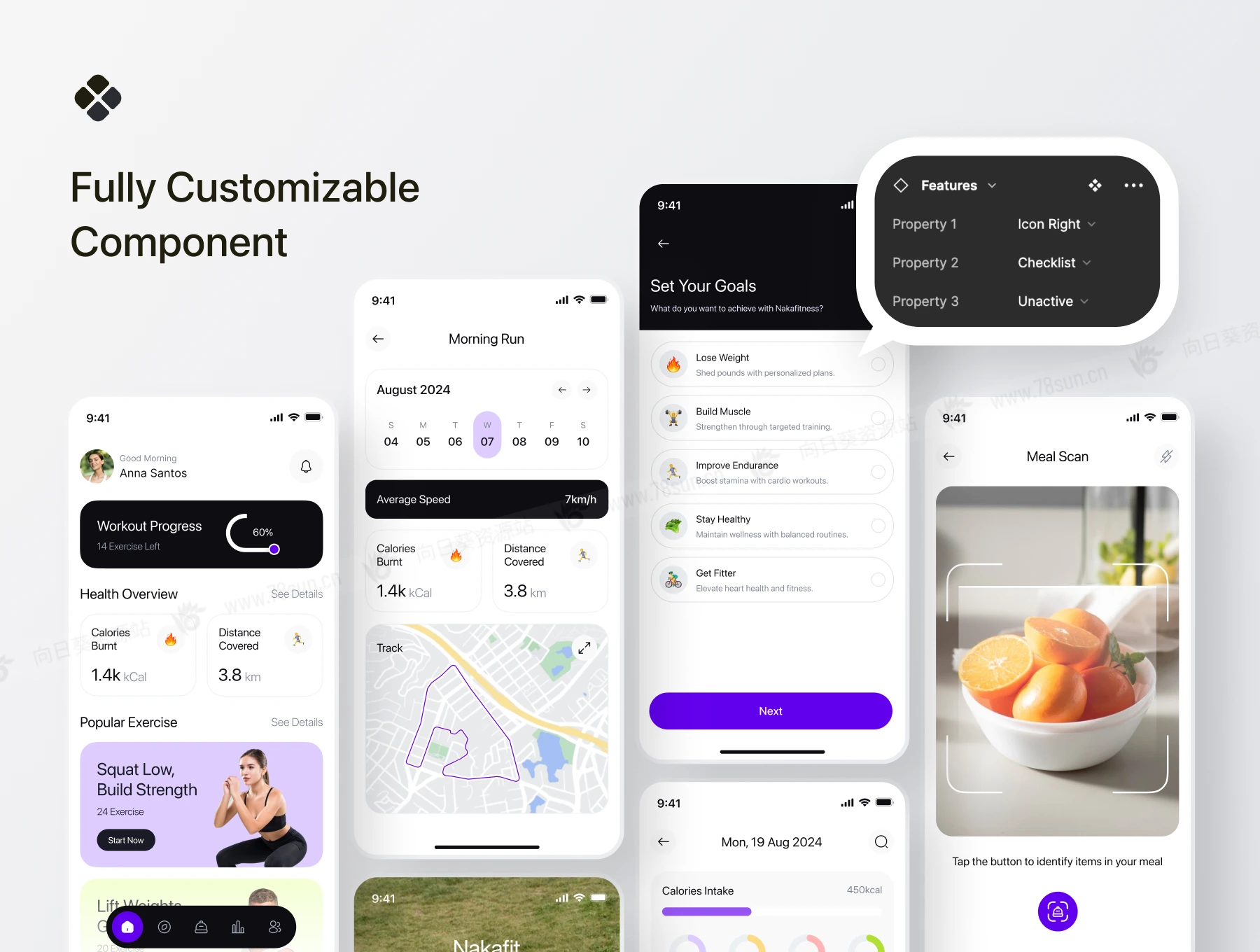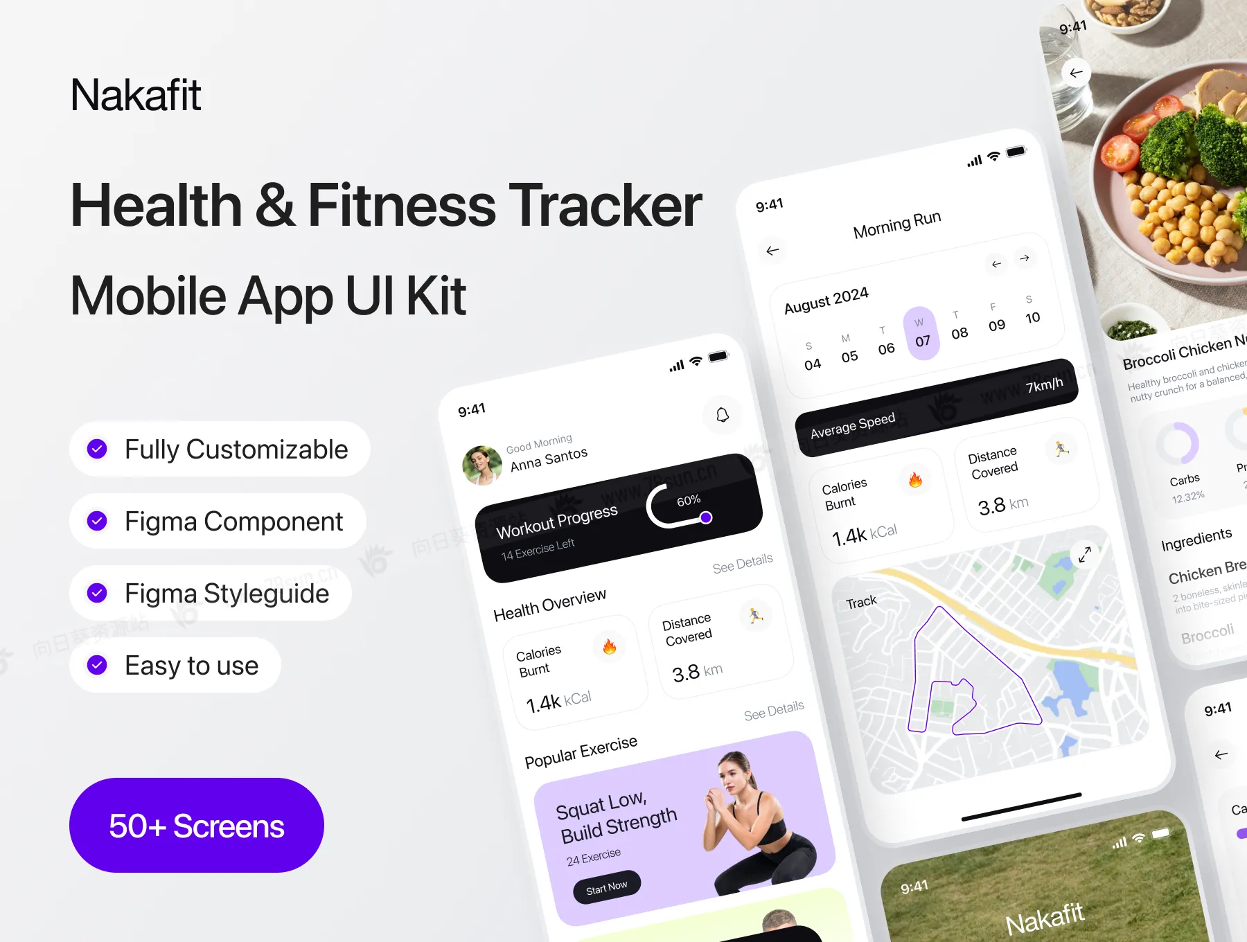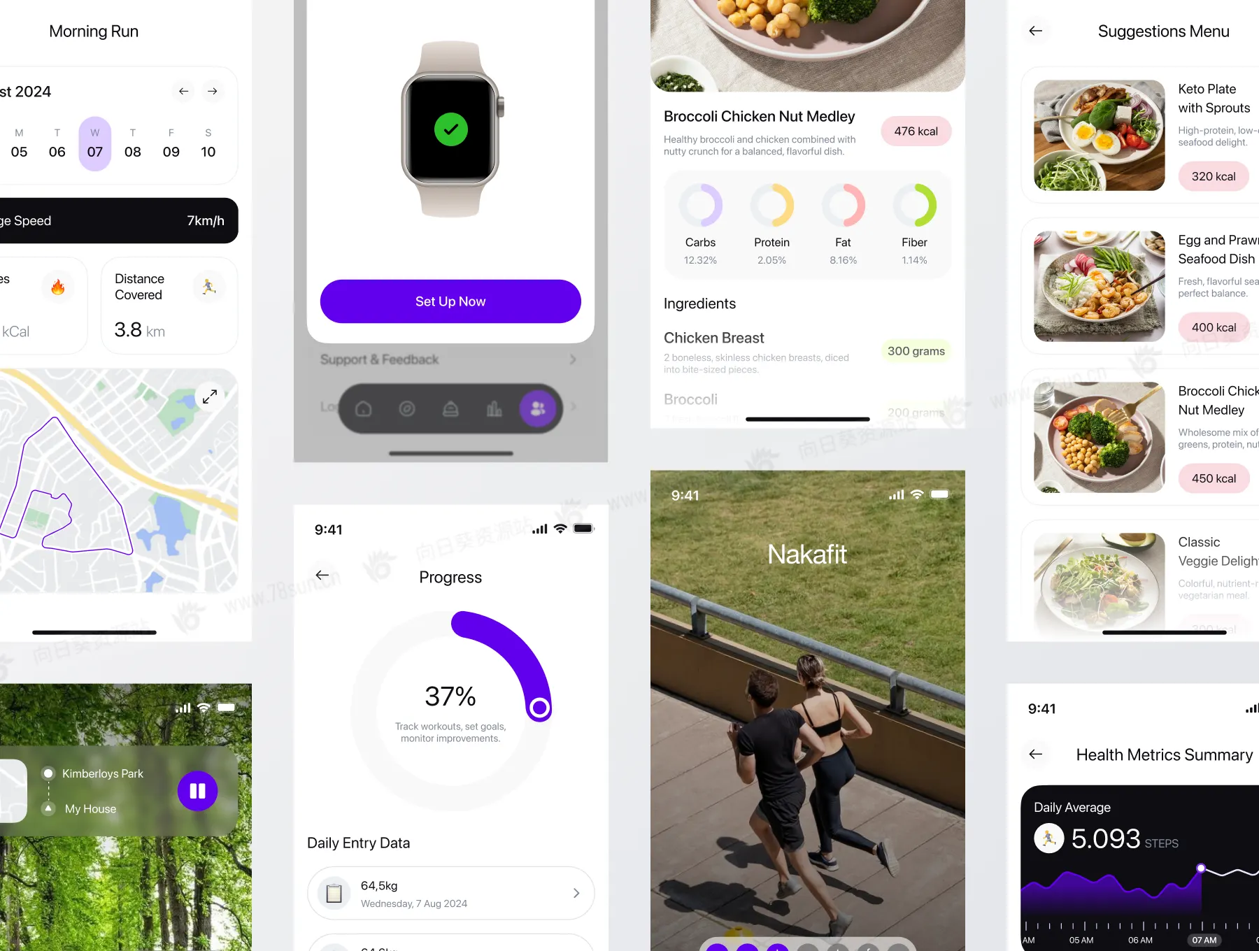健康饮食运动健身追踪器app ui界面设计fig源文件模板,
