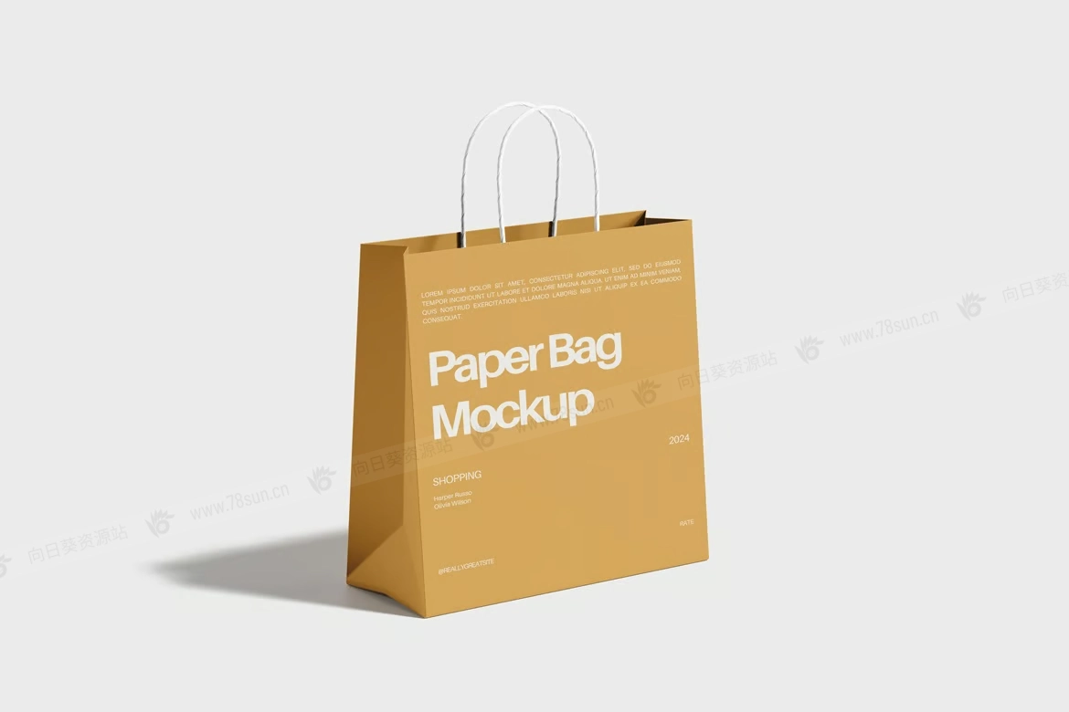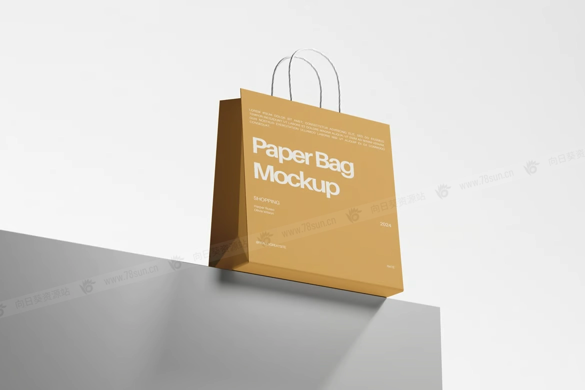纸袋购物袋手提袋VI效果图展示智能贴图PSD设计样机,包括 6 个具有分层良好 PSD 文件的 ITEMS,并且此模型还使用智能对象功能,这意味着您可以在几秒钟内轻松快速地使用自己的设计更改当前设计。