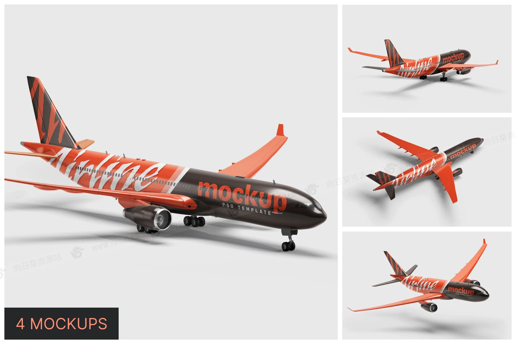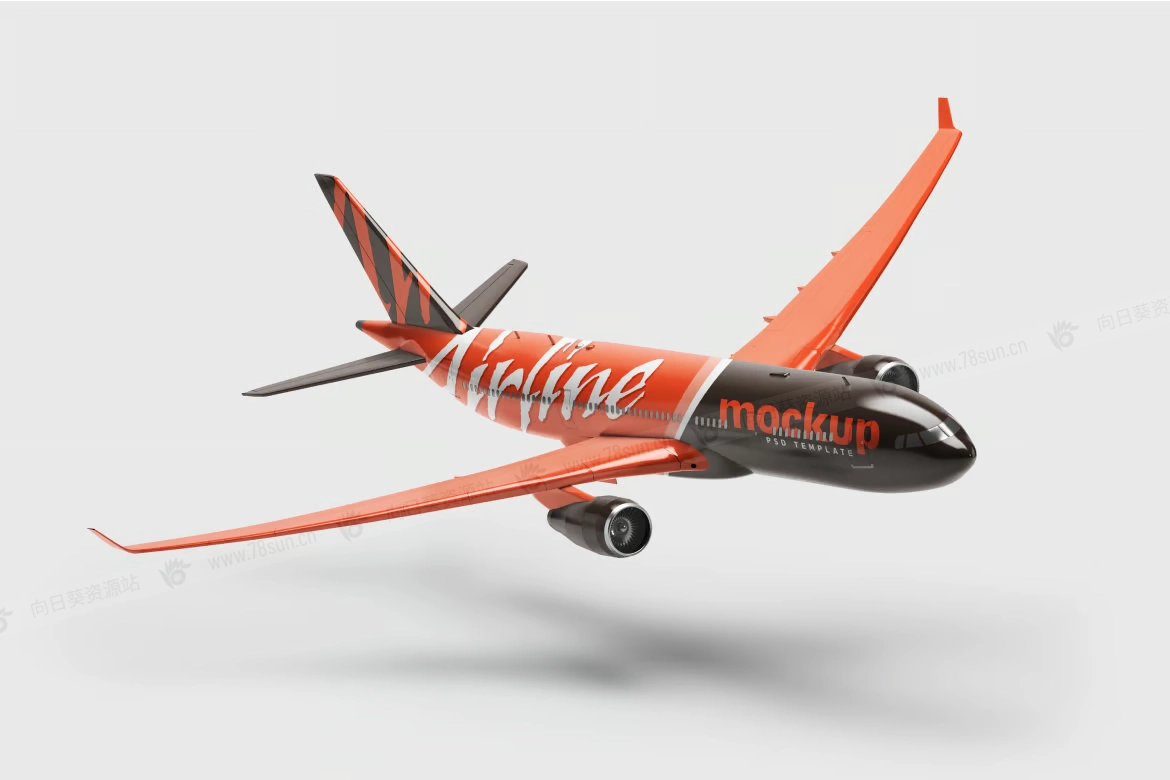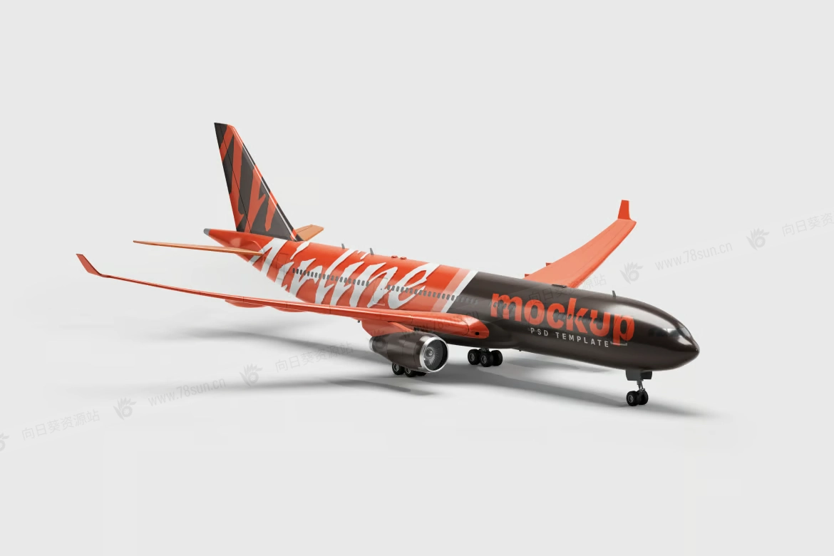 飞机品牌VI效果图展示智能贴图psd设计样机,可以在飞机上展示您的徽标、配色方案和品牌元素,