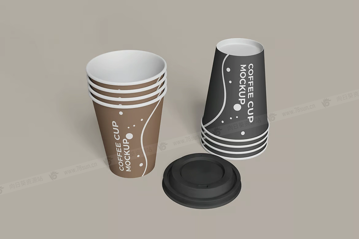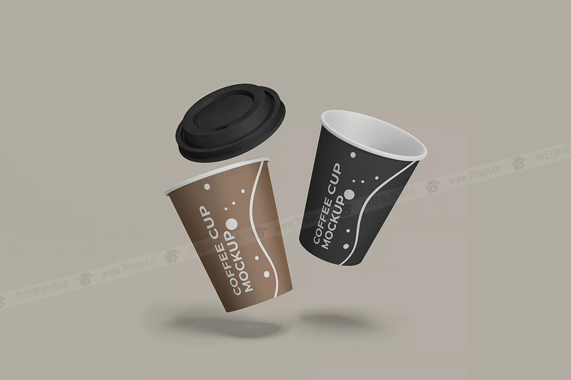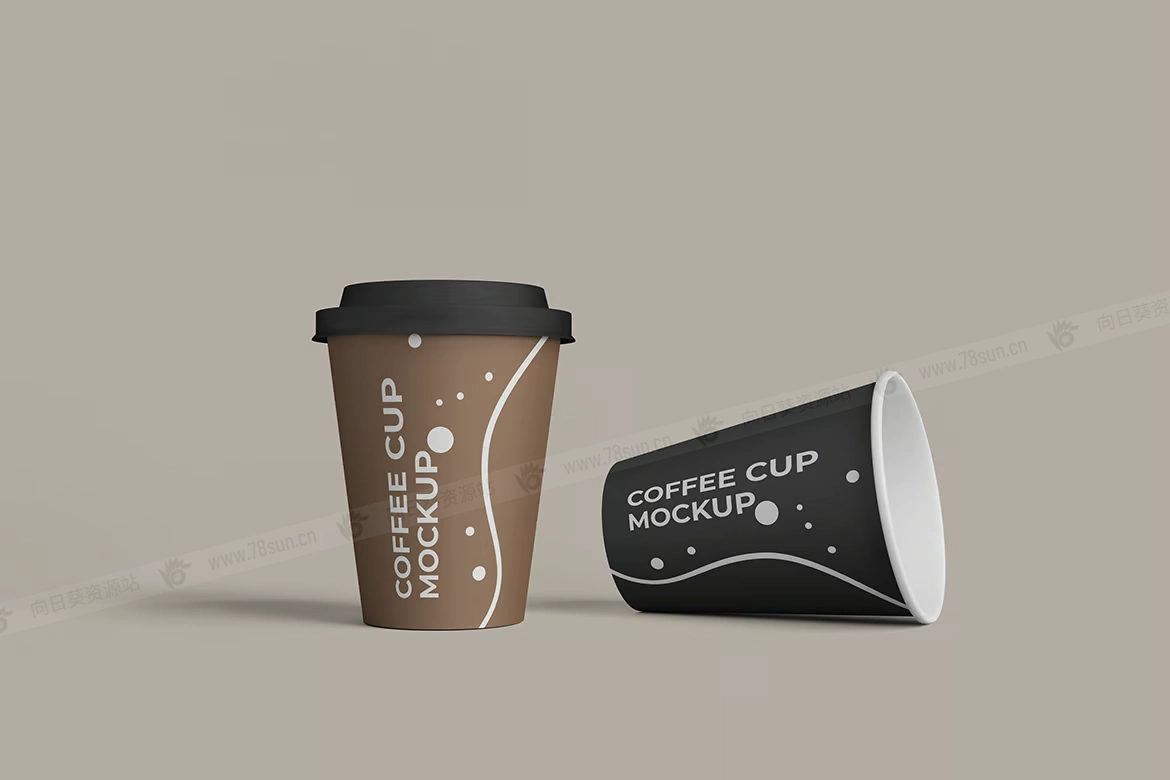 咖啡奶茶杯纸杯VI效果图展示智能贴图psd设计样机。使用智能对象轻松替换您的设计,双击智能图层,复制并粘贴您的作品,保存,
