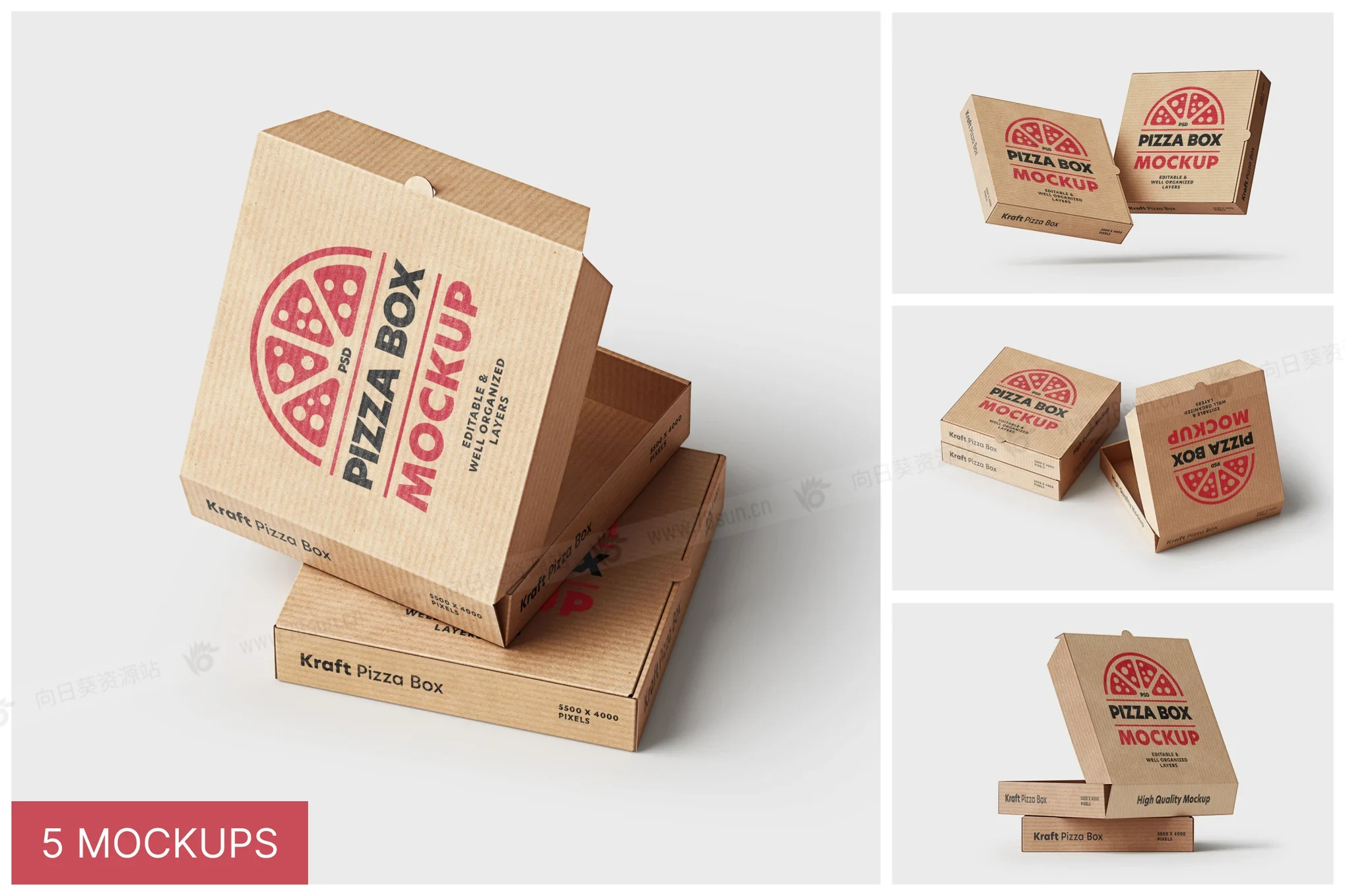 披萨包装纸盒品牌VI效果图展示智能贴图psd设计样机,